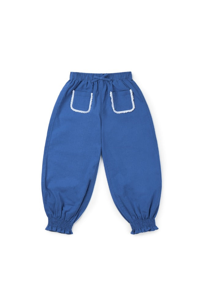 소재: 코튼 70%, 리사이클드 코튼 30%프러시안 블루 컬러의 팬츠로, 신축성 있는 허리 밴드에 스트레이트 핏과...