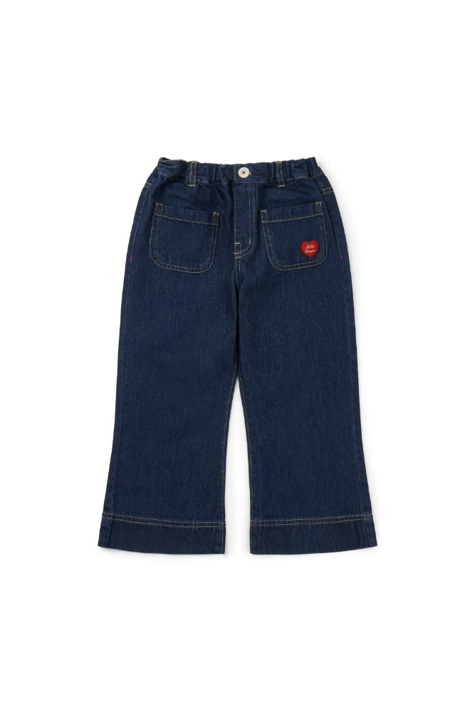 부츠컷 핏의 데님팬츠 입니다. 포켓에 하트 포인트가 사랑스러운 스타일의 여아용 팬츠입니다. Made in china제품 내...