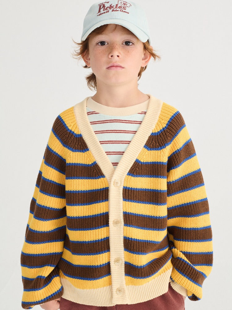 소재: 오가닉 코튼 100%멀티컬러 가디건으로, 브이넥 디자인에 롱 슬리브 래글런 소매와 프론트 버튼 여밈을 적용했으며...