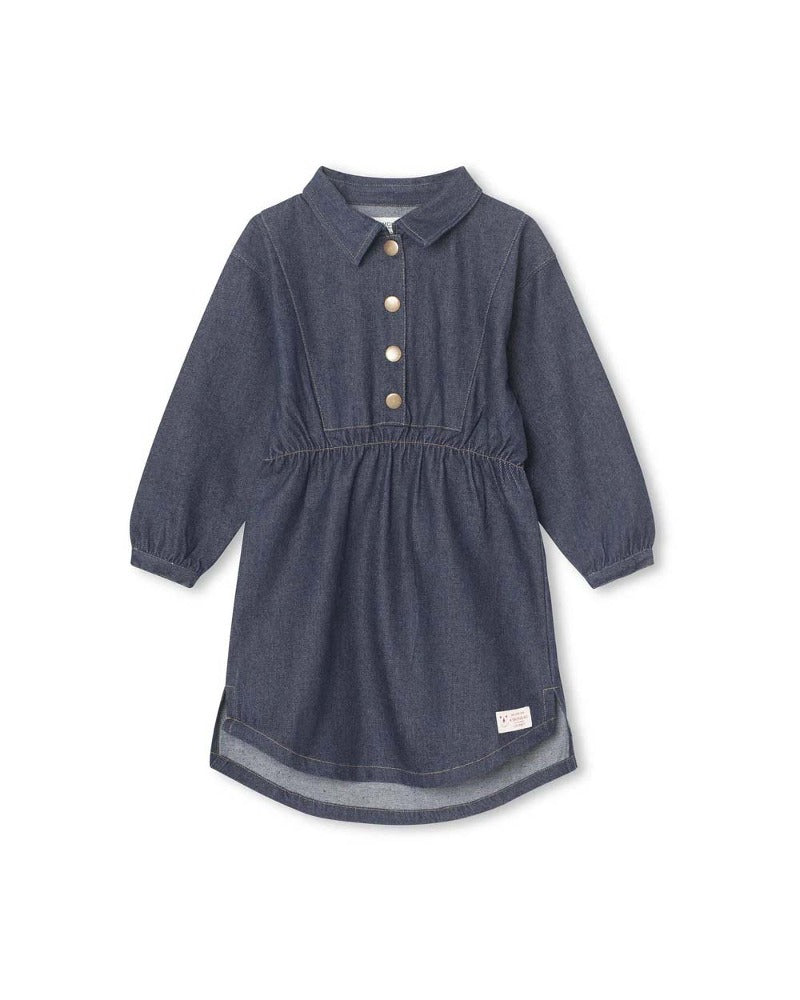 98% 면과 2% 엘라스테인으로 제작된 데님 드레스입니다. 네크라인에는 셔츠 카라가 있으며, 앞면에 4개의 앤티크 브라스...