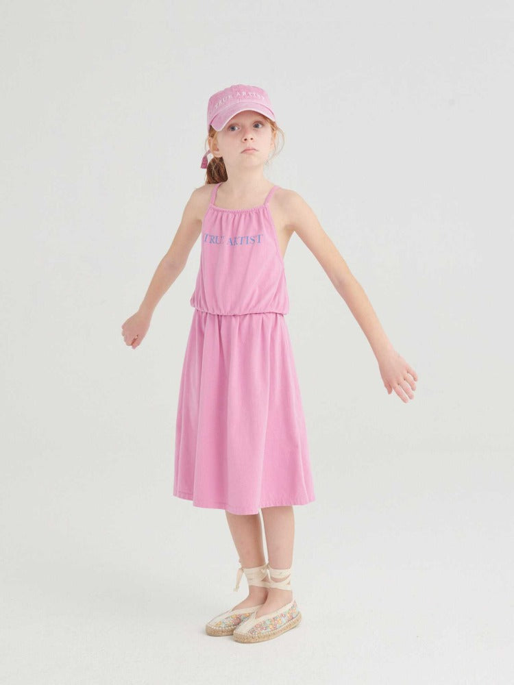 라일락 핑크 색상의 드레스 nº04는 100% 유기농 면으로 제작되었으며 앞면에 True Artist 프린트가 있습니다. 어깨...