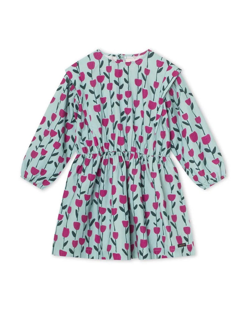 부드러운 100% 면 소재로 제작된 드레스로, 전체적으로 손으로 그린 튤립 프린트가 특징입니다. 긴 소매와 허리...