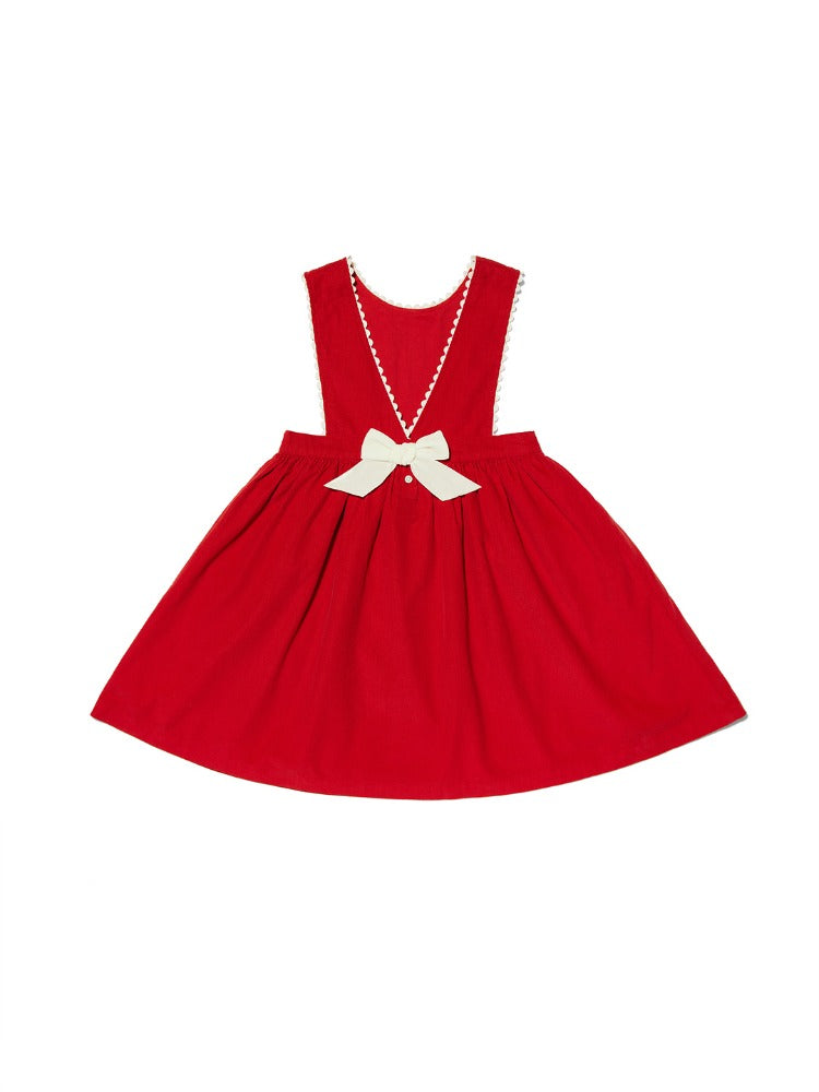 소재: 100% 코튼부드러운 코튼 벨벳 소재로 제작된 드레스입니다.넥라인과 암홀을 따라 인셋 릭랙 트리밍을 더해 클래식한...