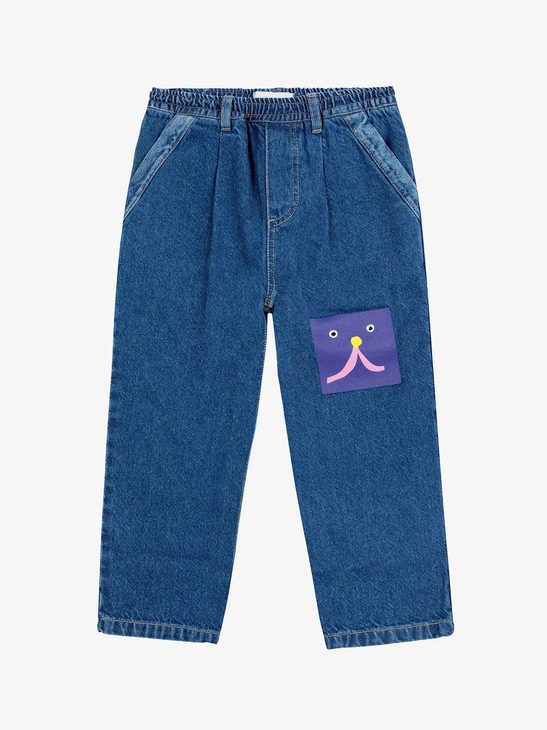 어떤 옷차림에도 쉽게 조합할 수 있는 파란색 'Funny Face' 데님 조거 팬츠는 어린 시절의 본질...