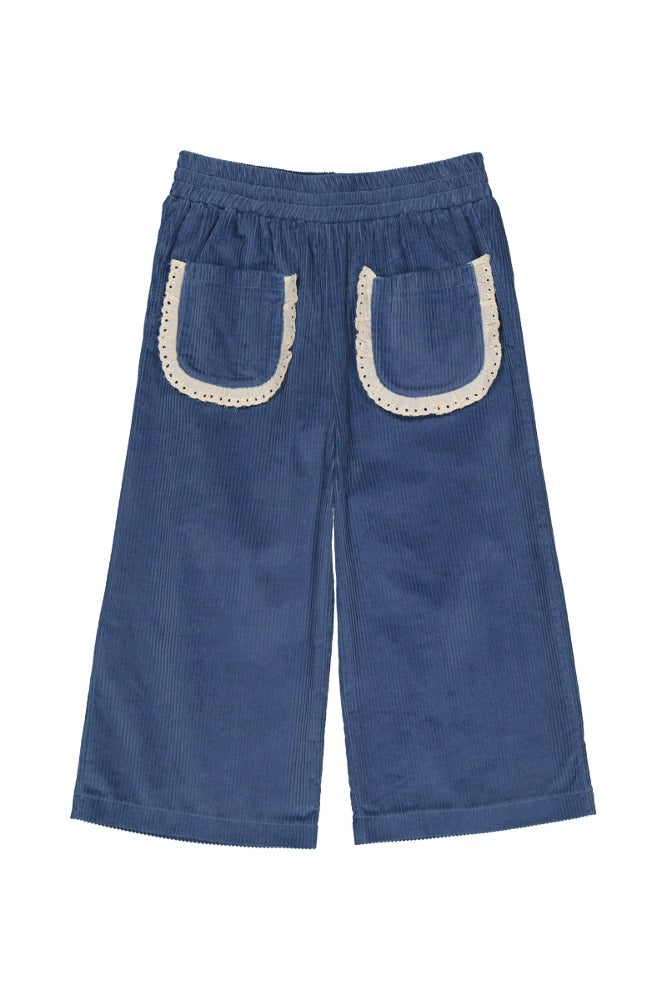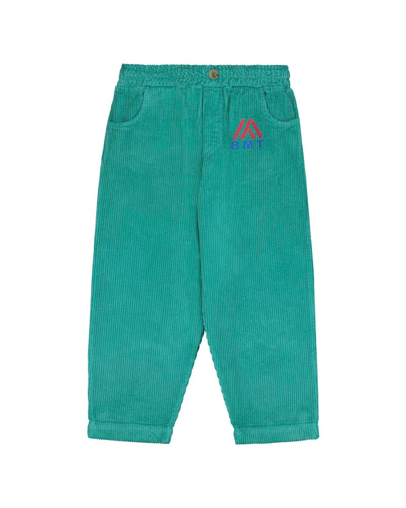 허리 밴딩과 앞뒤 주머니, 장식용 단추가 달린 코듀로이 바지입니다. 앞면 상단에 BMT 자수 장식이 있습니다....