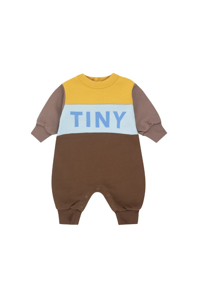 이 머스터드와 초콜릿 색상의 컬러 블록 원피스는 100% 면으로 제작되었습니다. 다채로운 TINY 로고가 특징이며, 다리와...