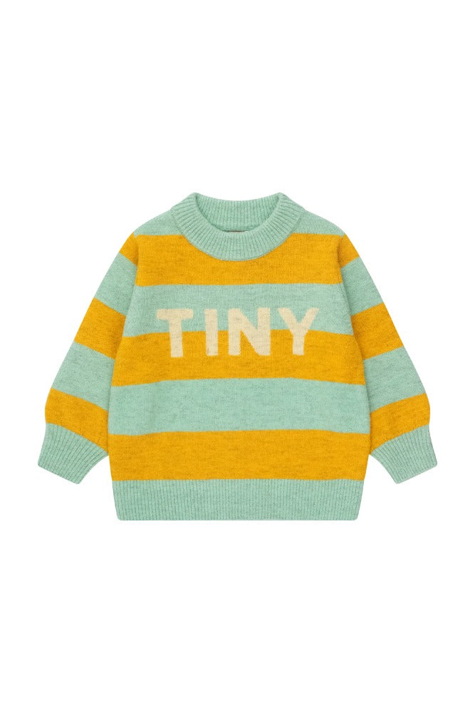 이 부드럽고 폭신한 스웨터는 대담한 노란색과 에메랄드 스트라이프와 TINY 로고가 특징입니다. 50% 아크릴, 35% 나일론,...