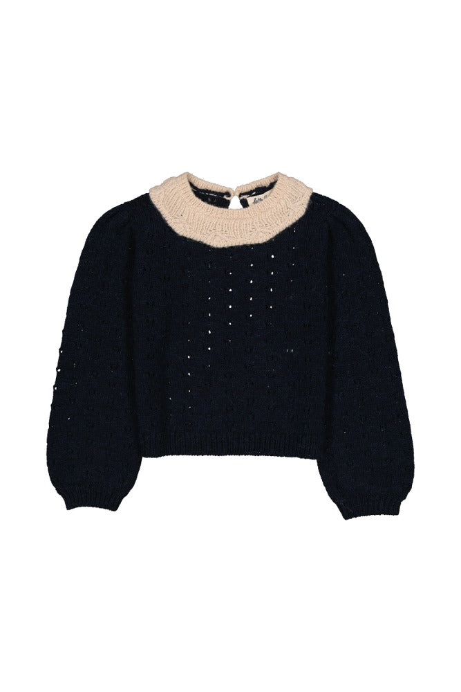 아크릴 45%, 슈퍼파인 알파카 37%, 메리노 울 18%로 제작된 니트 점퍼입니다. Made in Mauritius.