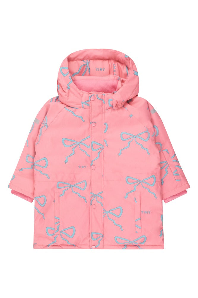 이 핑크색 보우 스노우 재킷은 스키 슬로프에서부터 일상까지 아기들을 따뜻하고 건조하게 유지해 줍니다! 재킷은 셰르파...
