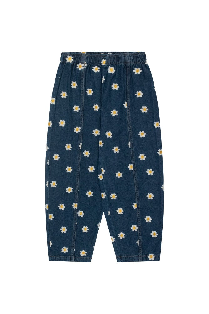 이 다크 워시 데님 팬츠는 전체적으로 데이지 자수가 새겨져 있으며, 100% 면으로 제작되었습니다. 버튼과 지퍼...