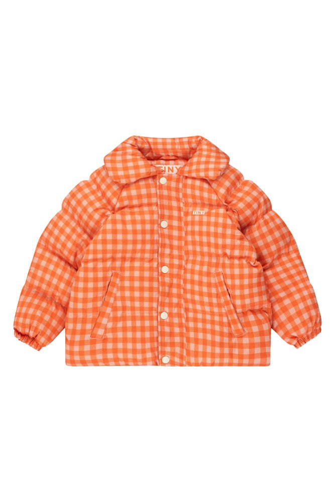 아주 따뜻한 이 레드 패딩 재킷은 100% 면으로 제작된 비쉬 프린트 외관과 두툼한 패딩 내장으로...