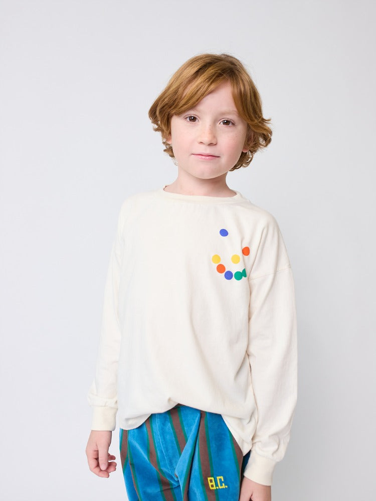 100% 오가닉 코튼 소재의 오프화이트 티셔츠입니다. 긴소매 디자인으로, 시보리 커프스, 여유로운 핏, 라운드넥이 특징입니다. Made...