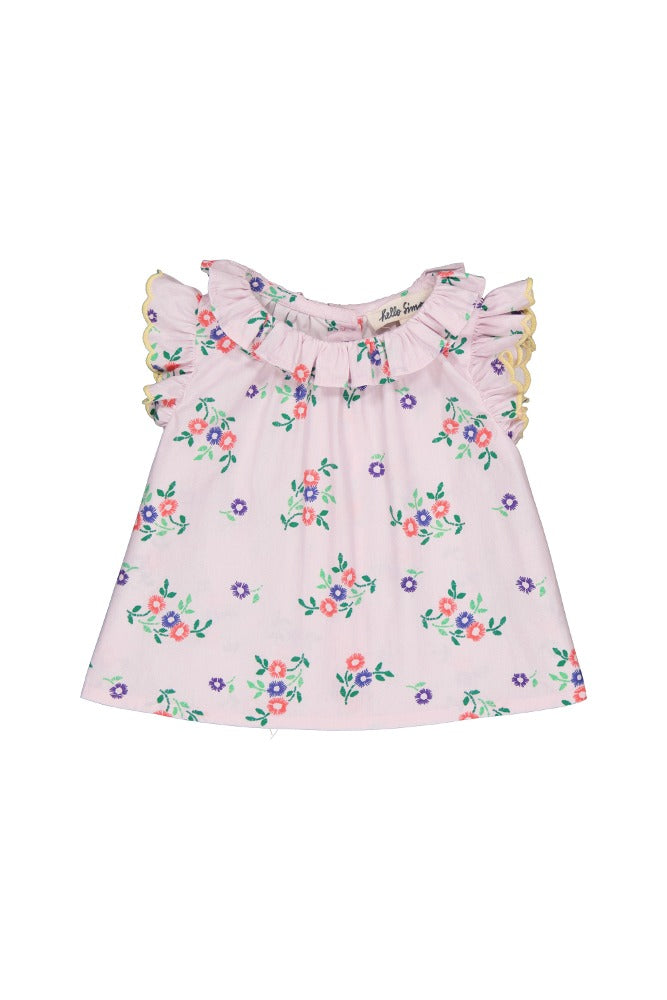 면 소재로 제작된 베이비 블라우스 입니다. 전체적으로 프린트가 들어간 디자인입니다. Made in India.