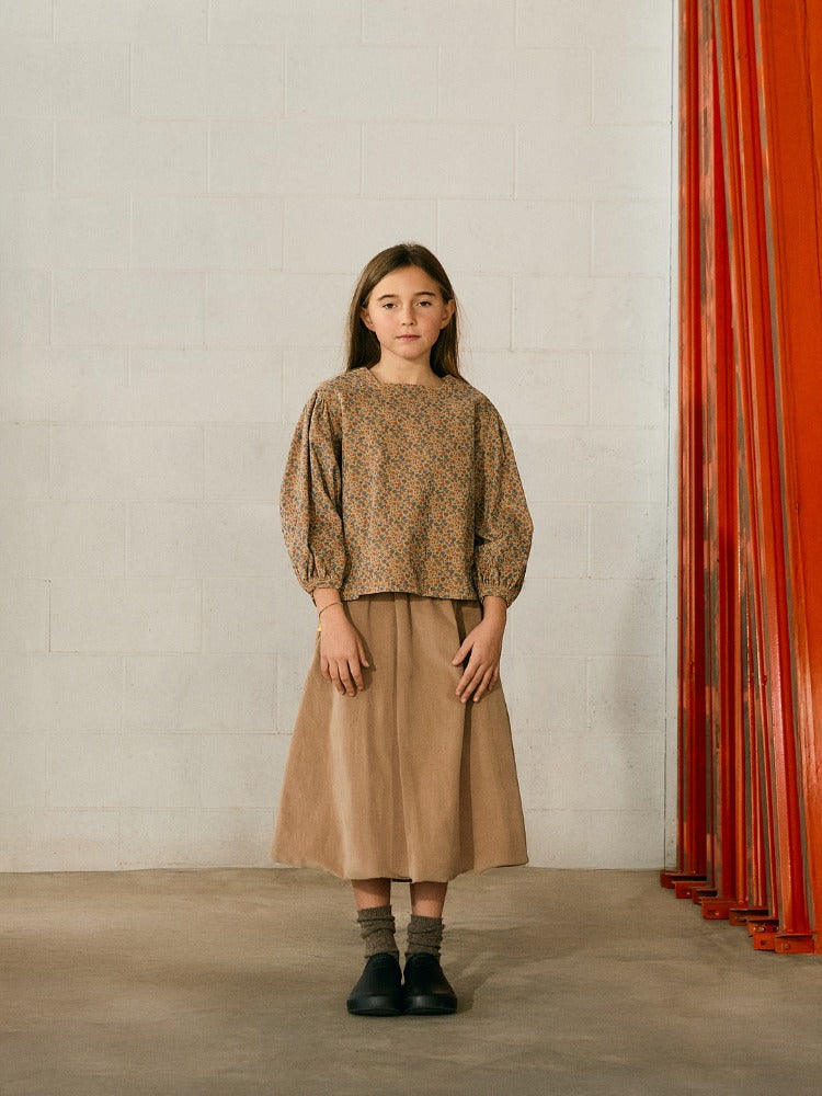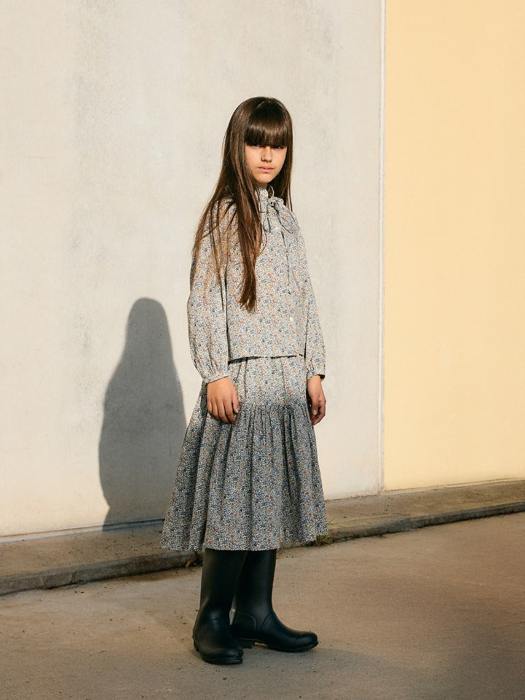 소재: 100% 코튼리버티 코튼으로 제작된 미디 스커트입니다. 볼륨감 있는 실루엣에 싱글 러플과 신축성 있는 허리...