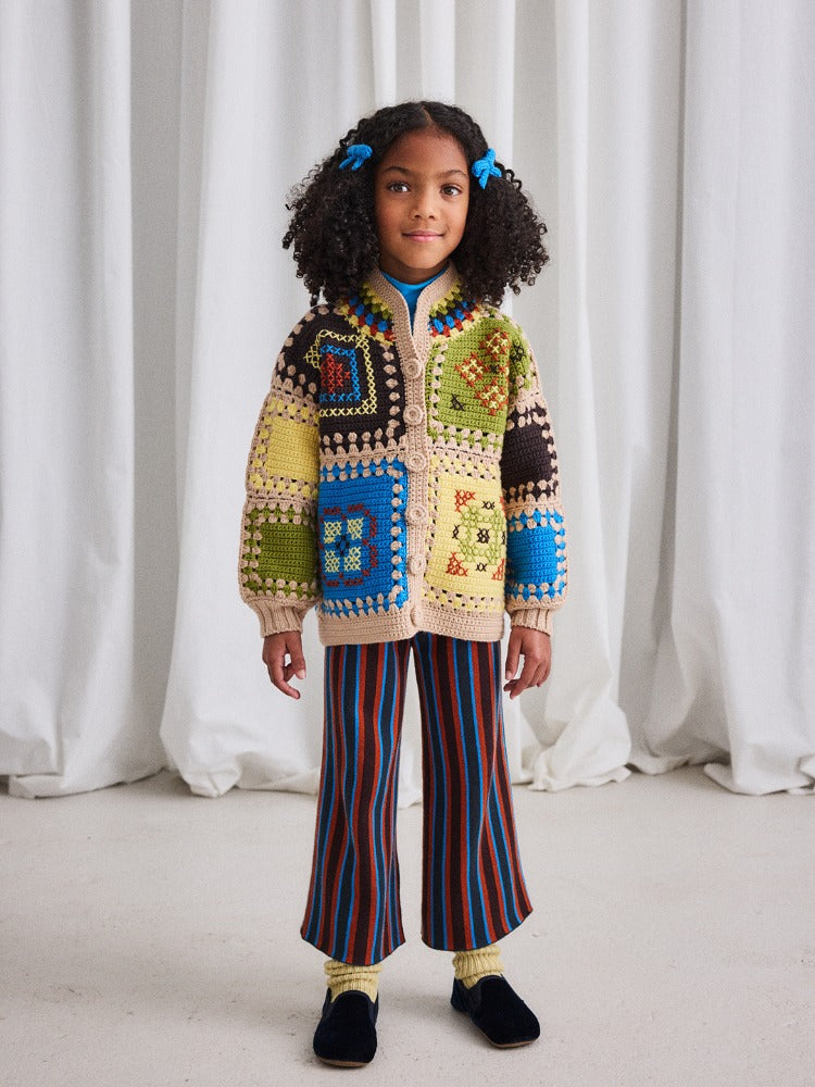 소재: 100% 피마 코튼피마 코튼 자카드 니트 소재의 크롭 스트라이프 팬츠.슬림한 핏으로 디자인되었으며, 대비 컬러의...
