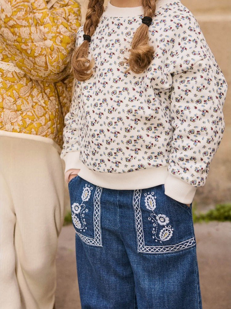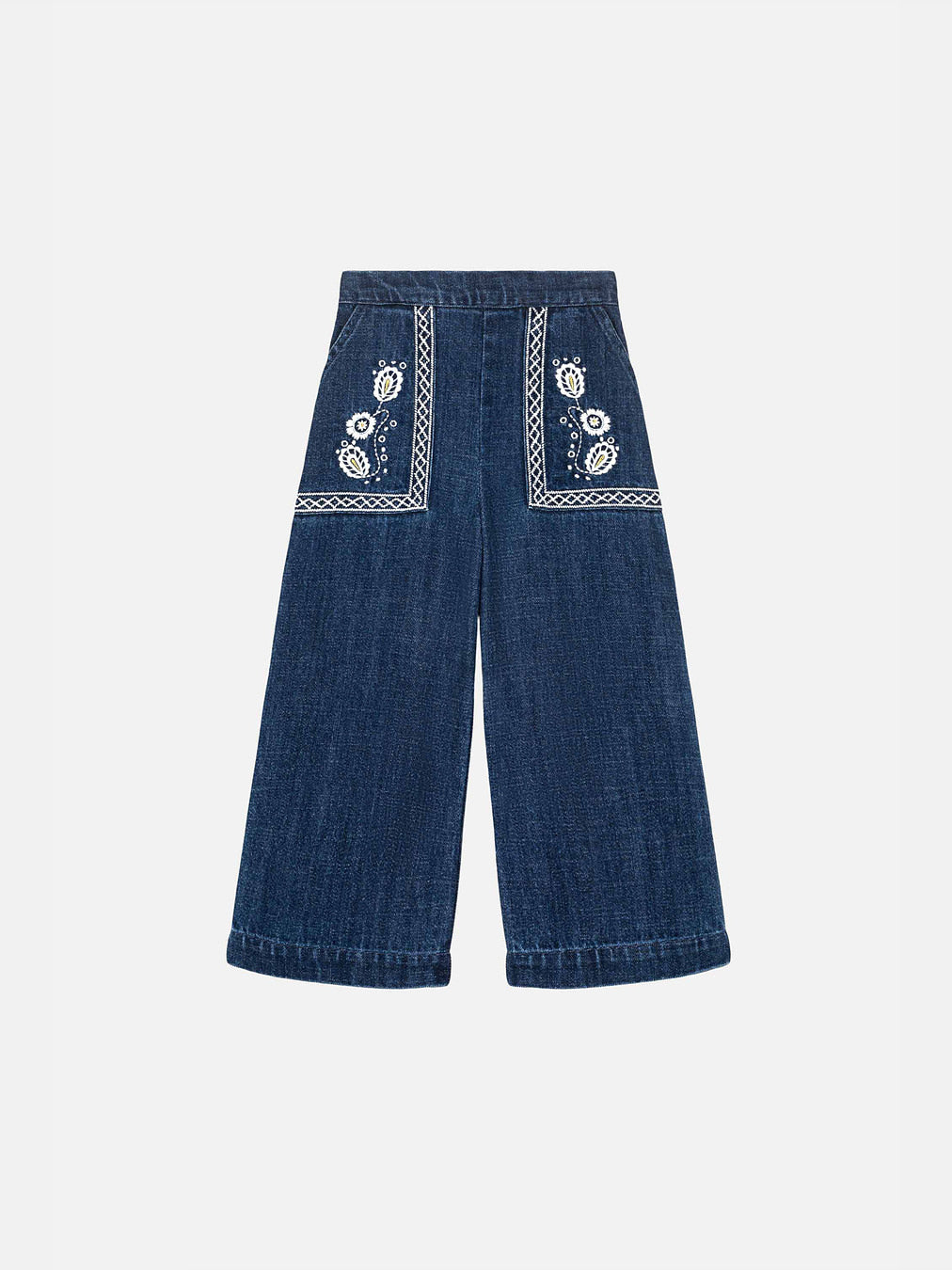 우리가 사랑하는 디테일:· 소재: 코튼 66%, 리오셀 34% 우븐 소재· 가볍고 부드러운 데님 팬츠· 스트레이트 핏· 배색 자수 디테일이 더해진 앞포켓· 뒷면 신축성 있는 허리 밴드이 제품은 마리 피당세(Marie Pidancet)와 그녀의 팀이 파리에서 디자인했습니다.물 온도 30°C 로 약하게 세탁표백 금지기계건조 금지낮은 온도로 다림질드라이클리닝 금지뒤집어서 세탁유세한 색상끼리 세탁화기에 가까지 하지 말 것