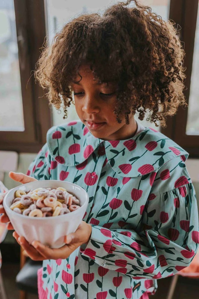 부드러운 100% 면 소재로 제작된 셔츠로, 전체적으로 튤립 프린트가 인쇄되어 있습니다. 긴 소매 끝에는 커프스가 있으며, 오버사이즈 카라가 있어 귀엽고 여성스러운 느낌을 줍니다. 앞면에는 버튼이 줄줄이 달려 있으며, 앞쪽은 짧고 뒷쪽은 긴 디자인입니다. 여유롭고 편안한 핏을 제공합니다.색상: 튤립 프린트소재: 100% 면세탁 방법: 40도 기계 세탁, 건조기 사용 금지