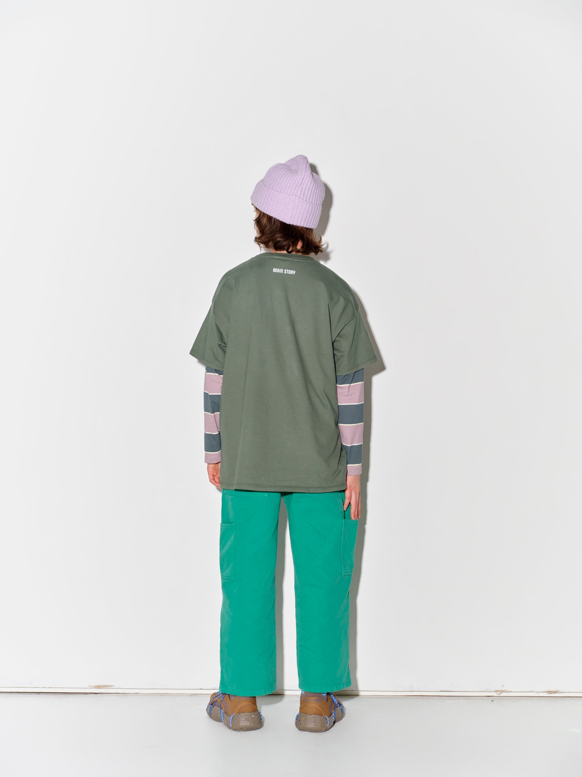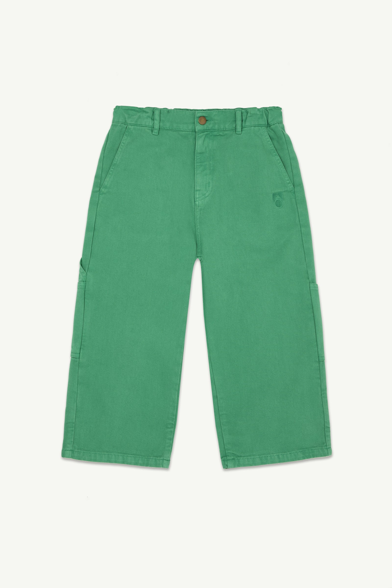소재: 오가닉 코튼 100%심플리 그린 컬러의 페인터 팬츠는 유기농 코튼 소재로 제작되었으며, 와이드하고 여유로운 스트레이트 핏으로 편안한 실루엣을 연출합니다.워크웨어에서 영감을 받은 디자인으로, 허리 스트링과 다수의 포켓이 더해져 실용적인 디테일을 갖춘 데일리 아이템입니다. 자수 로고 디테일이 감각적인 포인트를 완성합니다.Made responsibly in Portugal.