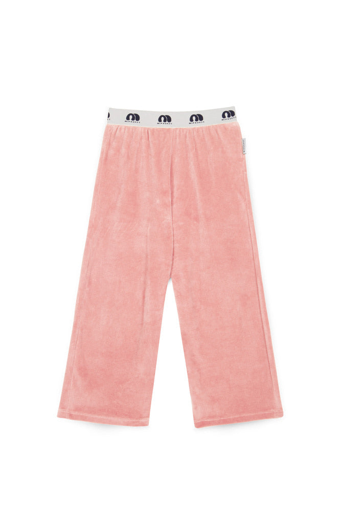 유기농 코튼 벨벳으로 수작업 제작된 이 와이드 레그 팬츠는 MIPOUNET 로고가 들어간 허리밴드로 특징 지어집니다.