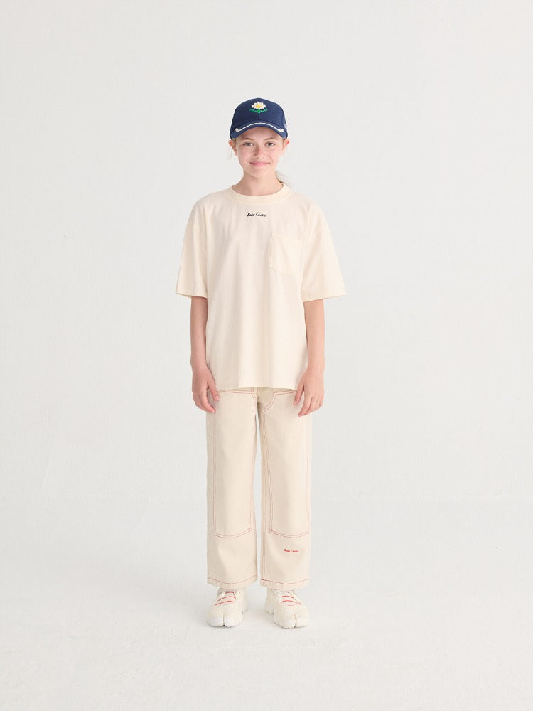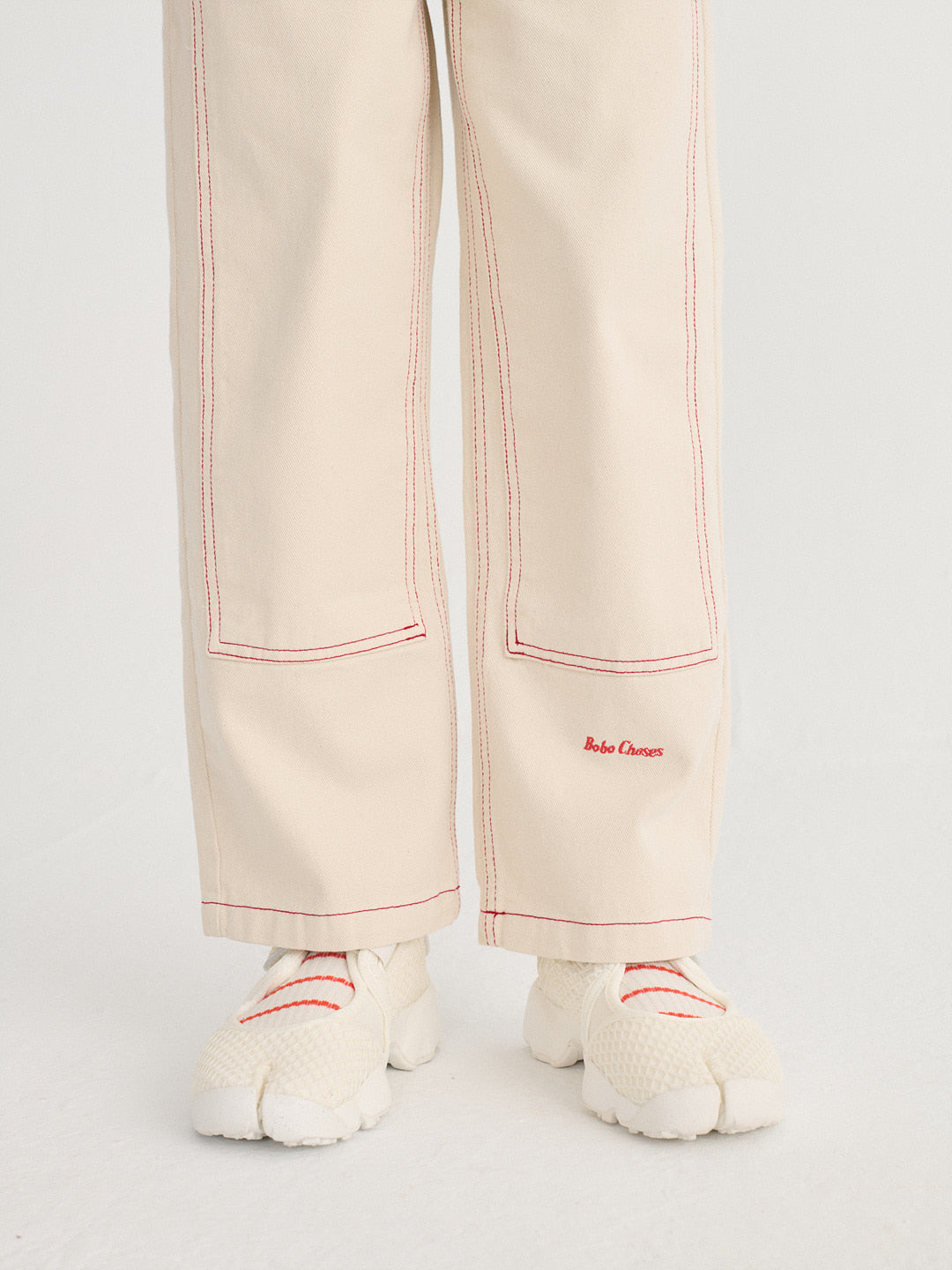 소재: 오가닉 코튼 100%오프화이트 컬러의 팬츠로, 신축성 있는 허리 밴드에 사이드 포켓과 자수 디테일, 스트레이트 핏과 롱 기장, 패치 포켓, 대비 스티치 디테일로 포인트를 더했습니다. Made in Portugal.· 찬물 30°C 세탁· 표백제 사용 금지· 저온 다림질 가능(*)· 드라이클리닝 금지· 건조기 사용 금지** 세탁 시 단독 세탁을 권장드리며, 상품 내부에 부착된 케어 라벨을 확인하신 후 안내된 방법에 따라 세탁해 주세요.세탁 방법 미확인으로 인한 변형 또는 손상은 교환 및 반품이 어려울 수 있는 점 참고 부탁드립니다.
