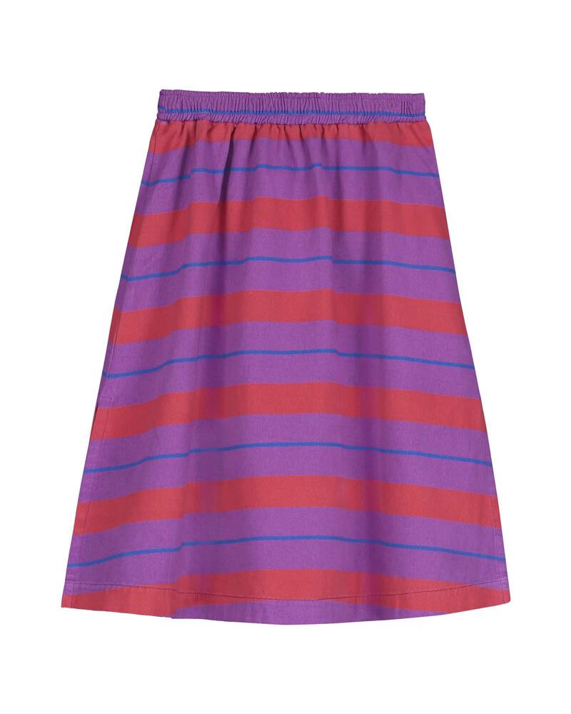 탄력 있는 허리 밴드와 사이드 오프닝이 있는 미디 스커트입니다. 두 가지 색상의 스트라이프 디자인이 특징입니다. 100% 오가닉 코튼 우븐. Made in Spain.