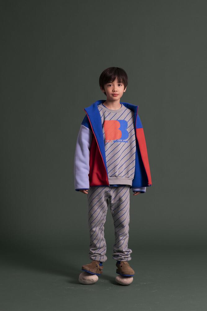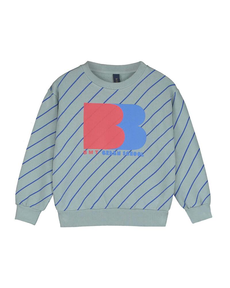라운드 넥, 신축성 있는 소매, 대각선 스트라이프가 있는 스웨트셔츠. 앞면에 BB Bonmot 그린 스쿨 프린트가 특징입니다. 100% 오가닉 코튼 플리스. Made in Spain.