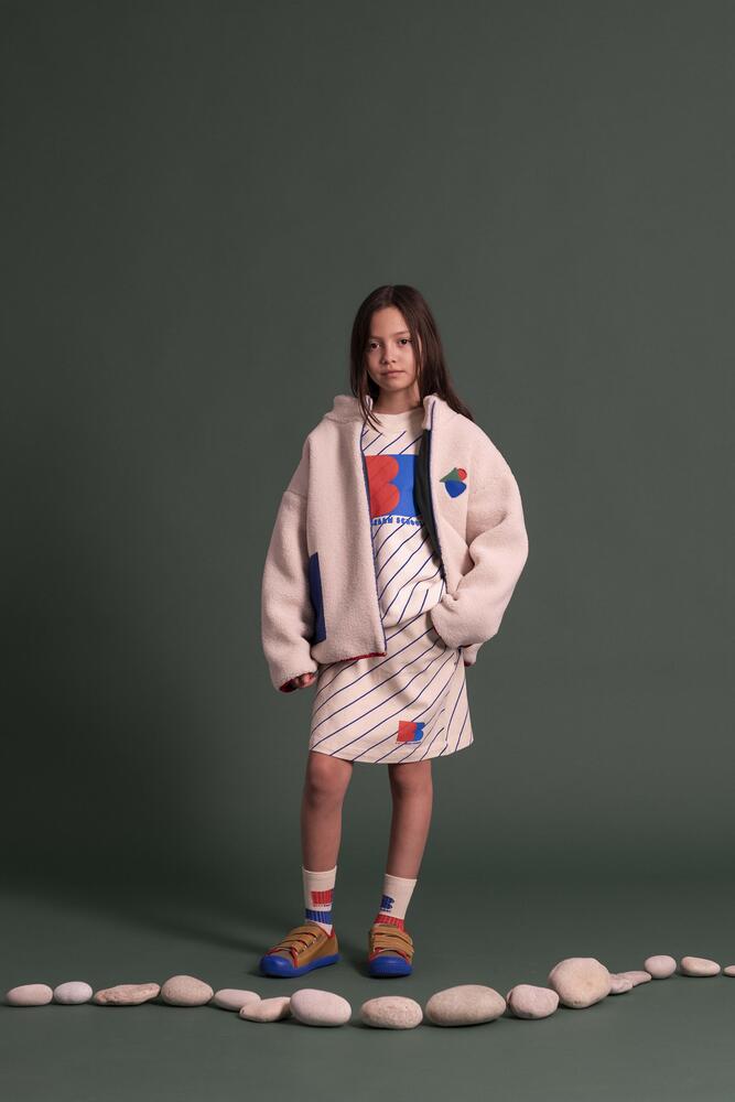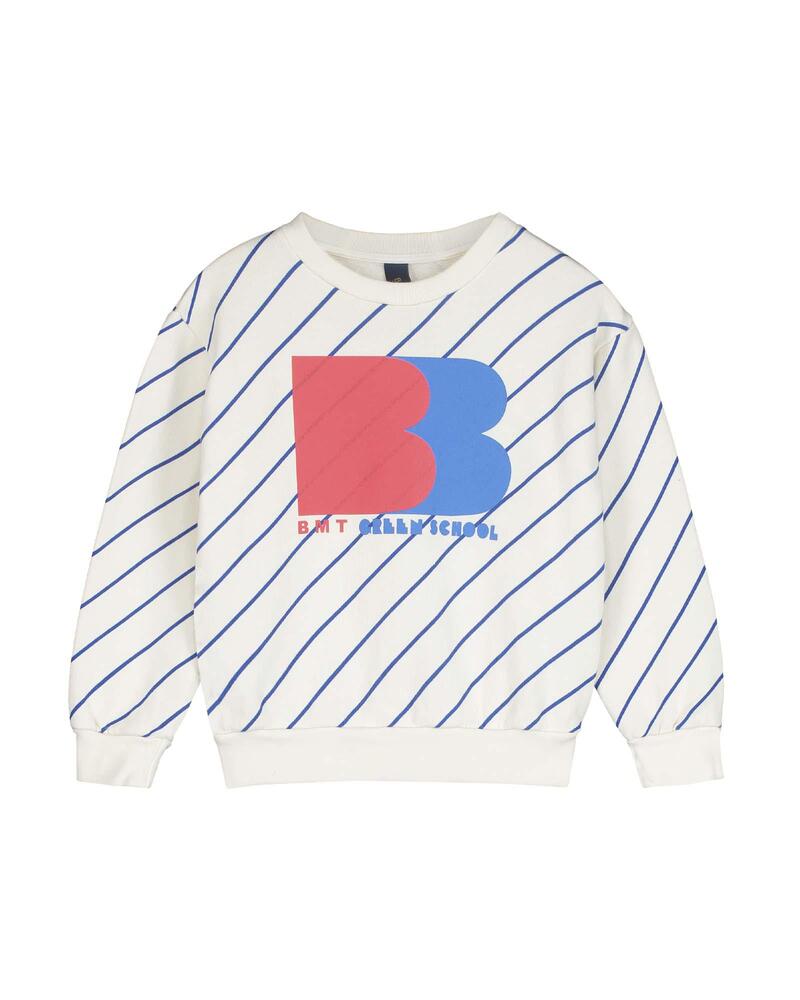 라운드 넥, 신축성 있는 소매, 대각선 스트라이프가 있는 스웨트셔츠. 앞면에 BB Bonmot 그린 스쿨 프린트가 특징입니다. 100% 오가닉 코튼 플리스. Made in Spain.
