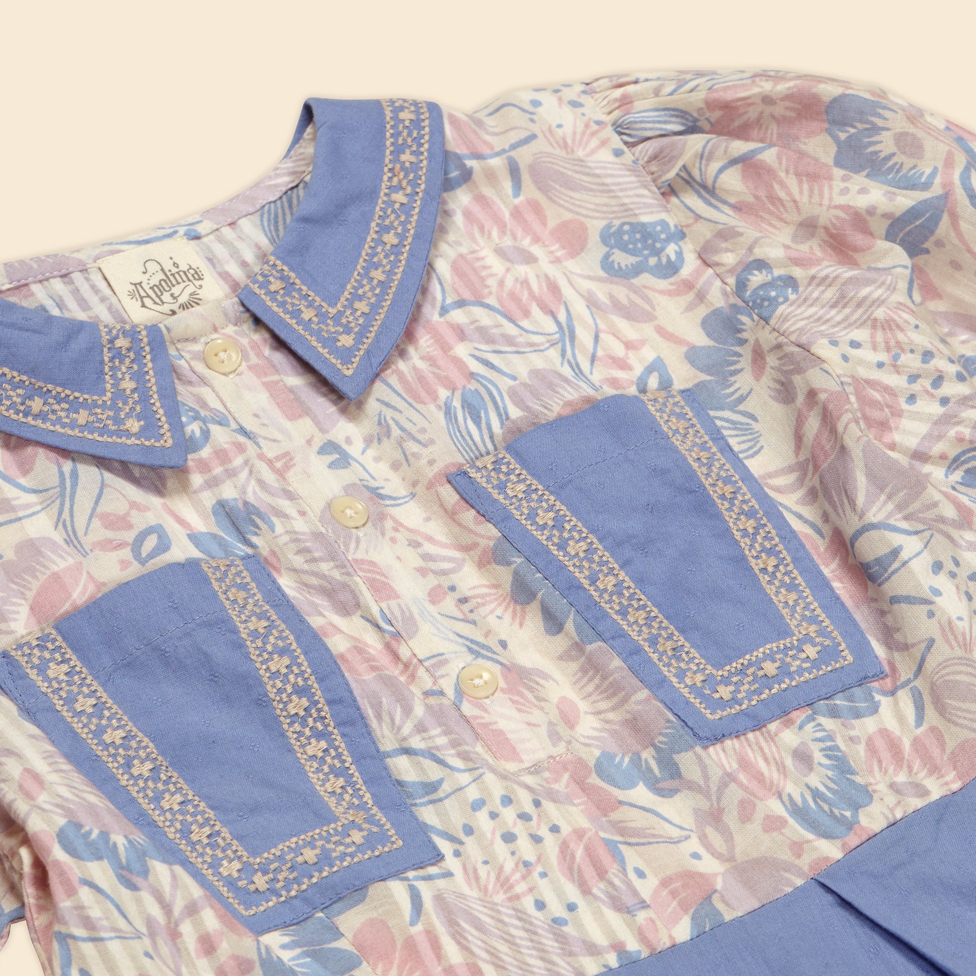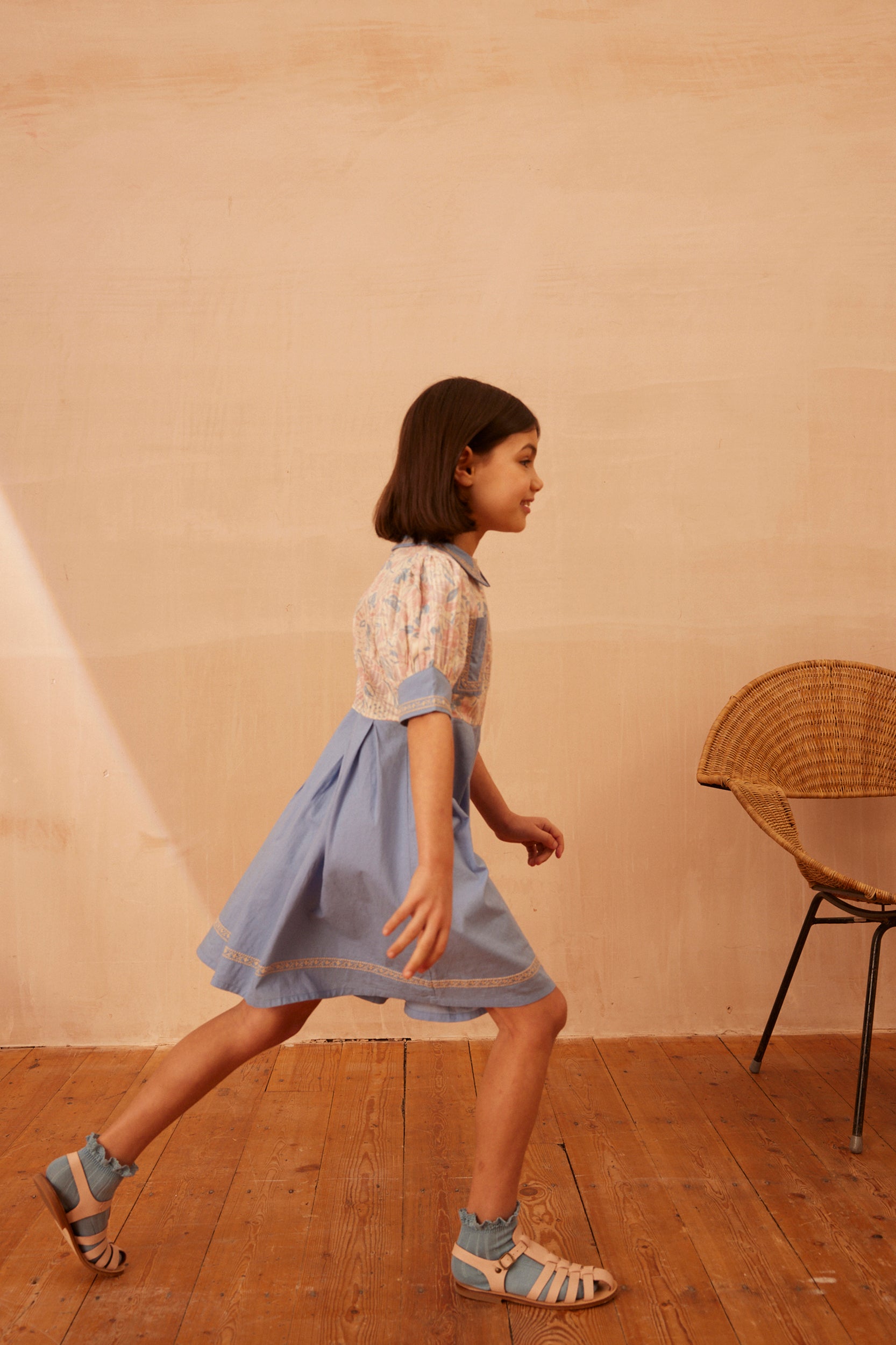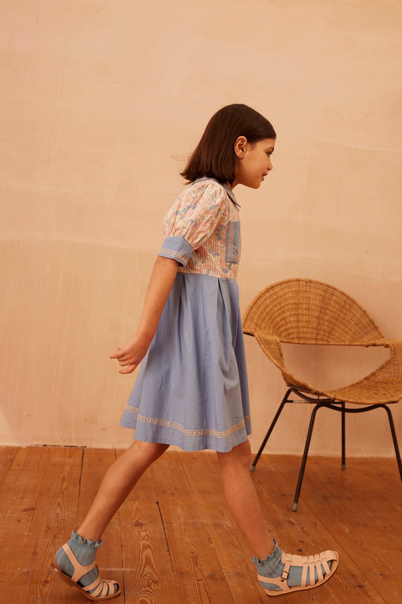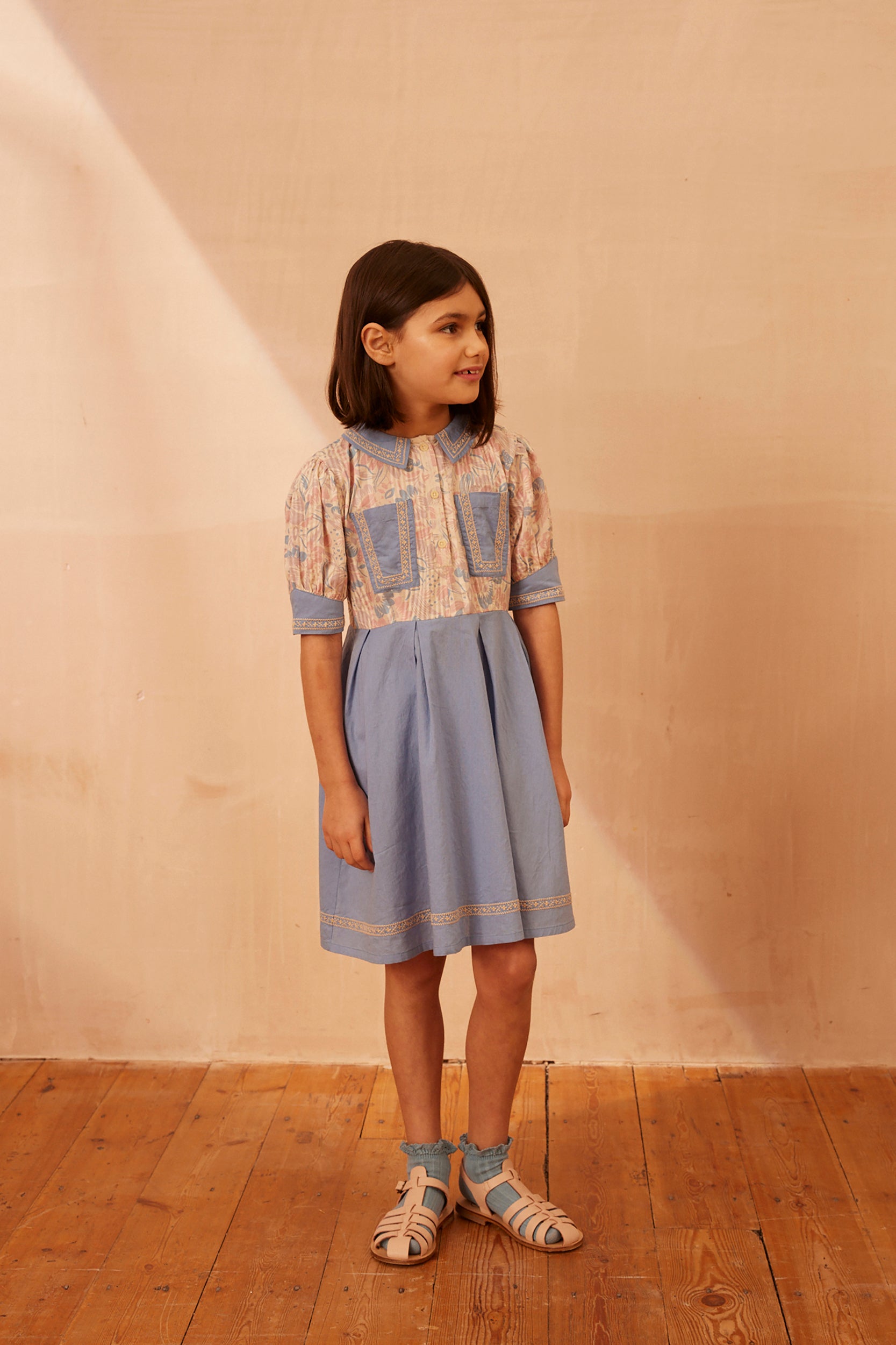 ★ 패키지 손상이 심한 일부 제품은 일반 투명 OPP 봉투로 교체되어 발송될 수 있습니다. 이 점 양해 부탁드립니다. Kay 드레스50’s 플로랄달콤한 레트로 스타일의 드레스, Kay는 ‘50s 플로랄’과 ‘콘플라워’ 면 원단으로 제작되어 1950년대의 핏 앤 플레어 실루엣을 자랑합니다. 정교한 선형 자수로 헴라인을 장식하고, 대비를 이루는 ‘콘플라워’ 칼라, 커프스, 주머니에 트리밍을 더했습니다. 앞면 버튼 플래킷과 허리 부분에 사이드 지퍼가 있어 입기 편리합니다. Kay는 양말과 루시 신발과 함께 빈티지한 여름 휴가 느낌으로 스타일링하기 좋습니다.100% 면 (프린트된 시어서커 / 직조 도비)인도에서 윤리적으로 제작손세탁 권장사이즈:2-3세: 드레스 길이 49cm3-5세: 드레스 길이 55cm5-7세: 드레스 길이 61cm7-9세: 드레스 길이 70cm스튜디오 촬영에서 Ilaria는 128cm 키이며 7-9세 샘플을 착용하고 있습니다.