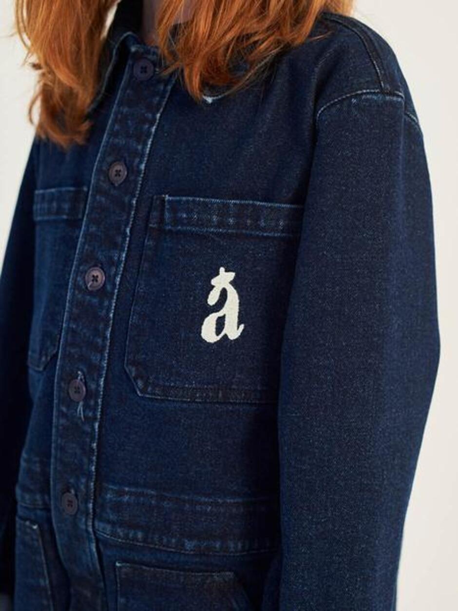 Dark Denim 오버롤 nº01은 면 77%, 재생 면 22%, 엘라스테인 1%로 제작되었습니다. 이 버튼 데님 점프수트는 스스프레드 칼라, 일반 크로치, 앞면 단추로 여미는 방식, 자수, 패치 포켓으로 구성된 디자인입니다. A 로고는 아티스트 프린트로 배기핏입니다. Made in Spain.