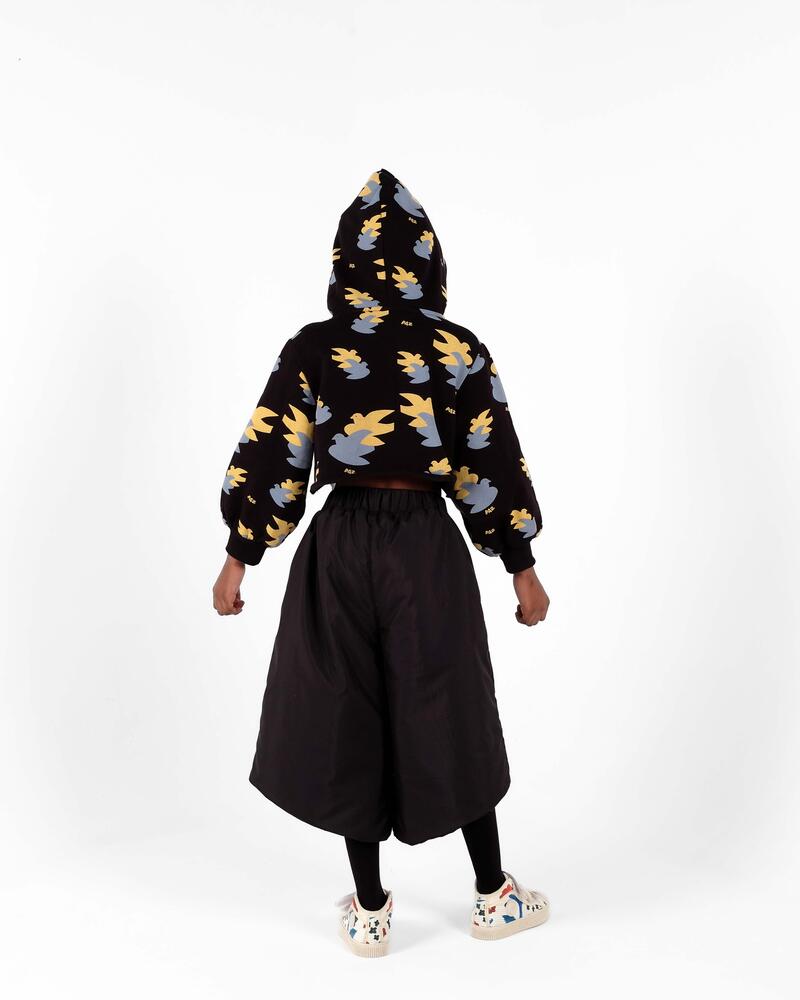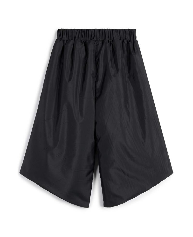 100% 재생 폴리에스터 패딩, 100% 폴리에스터 안감, 52% 비스코스, 48% 폴리에스터 소재의 크롭 길이의 패딩 비대칭 와이드 팬츠입니다. 신축성 있는 허리밴드와 측면 포켓이 특징입니다. Made in Portugal.