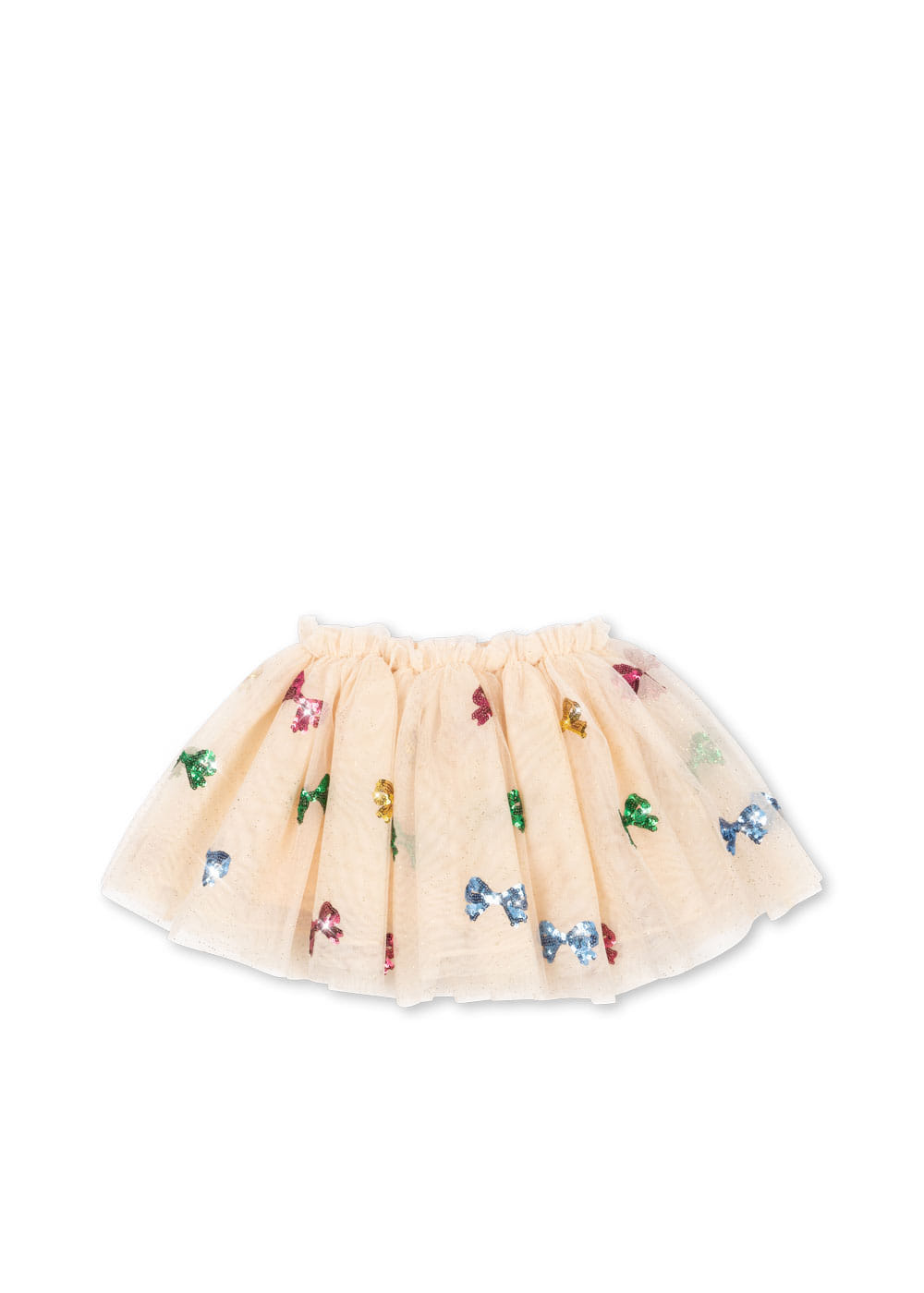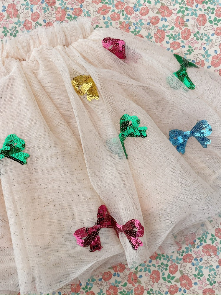 소재: 폴리에스터 100% / 안감 면 100%스팽글 자수가 더해진 튤 스커트로, 풍성한 실루엣이 돋보이는 디자인입니다.부드러운 코튼 안감과 신축성 있는 허리밴드로 편안하게 착용할 수 있습니다. Made in China.