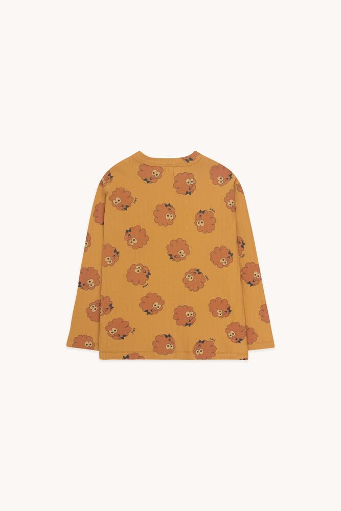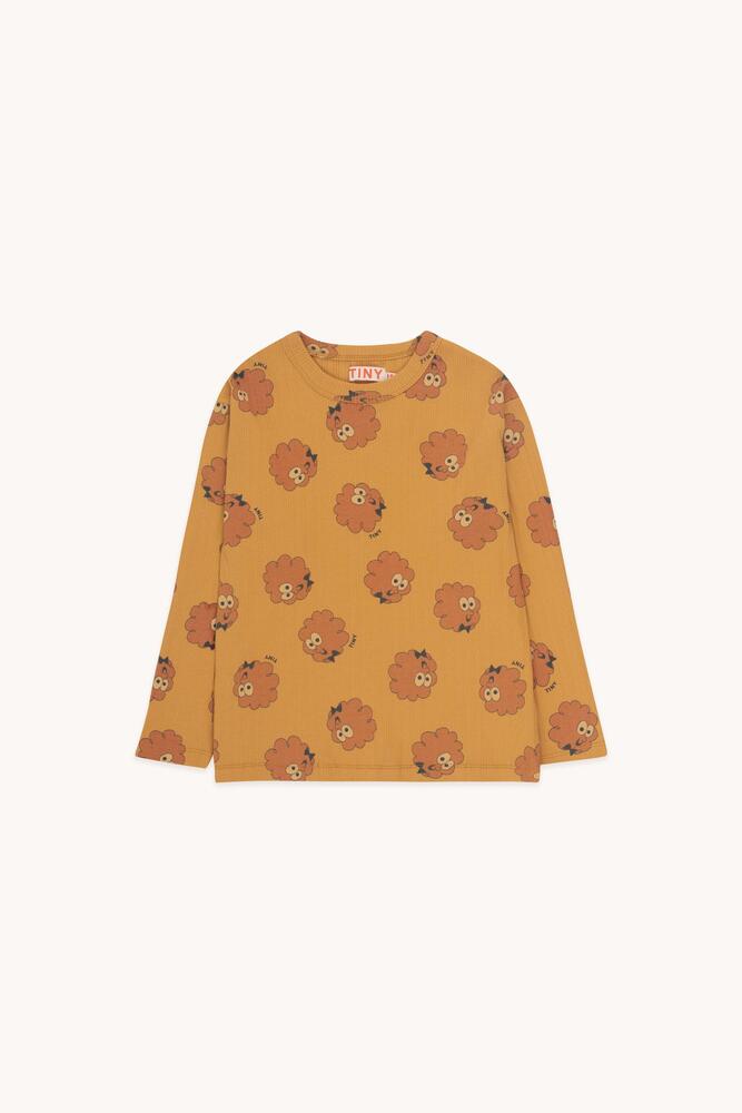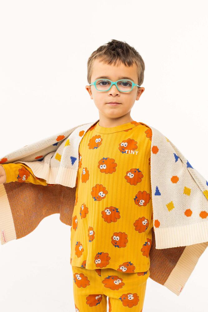 이 긴팔 머스타드 티셔츠는 전체에 캐릭터 프린트가 있으며, 면과 엘라스테인으로 제작되어 편안함과 내구성을 보장합니다. 이 상의는 립 텍스처와 라운드 넥라인으로 구성되어 있어 여유롭고 현대적인 실루엣을 제공합니다. Made in China.