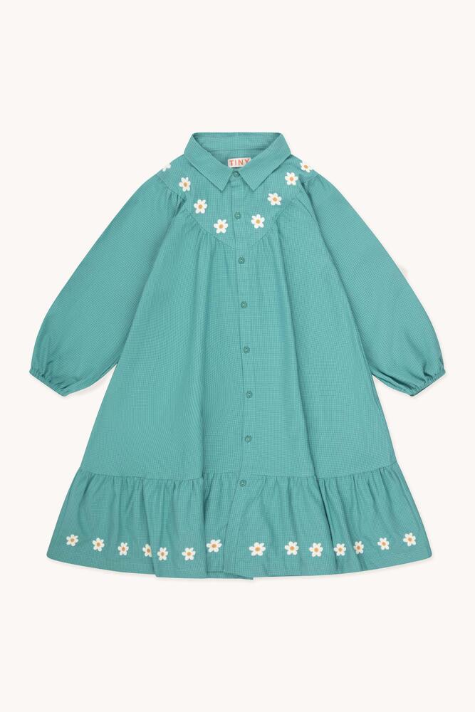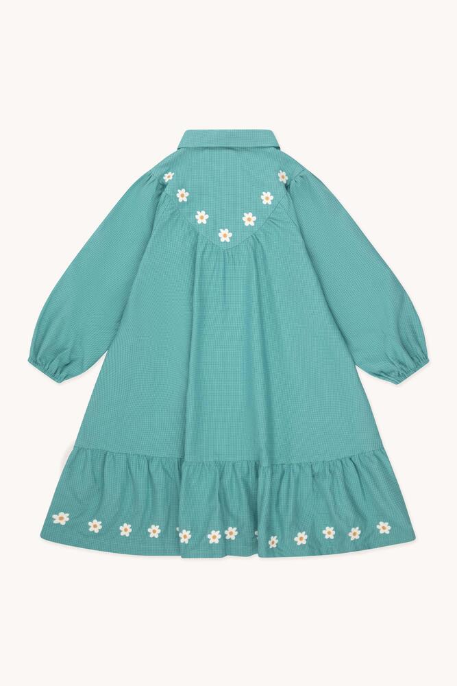 이 다크 에메랄드색 미세 체크 롱 슬리브 드레스는 100% 면으로 제작되었습니다. 셔츠 칼라와 요크 부분의 데이지 자수, 버튼 오프닝이 특징이며, 자수가 장식된 주름 스커트와 편안한 착용감을 제공하는 밴딩 커프스가 디자인되어 현대적이고 여유로운 실루엣을 완성합니다. Made in China.