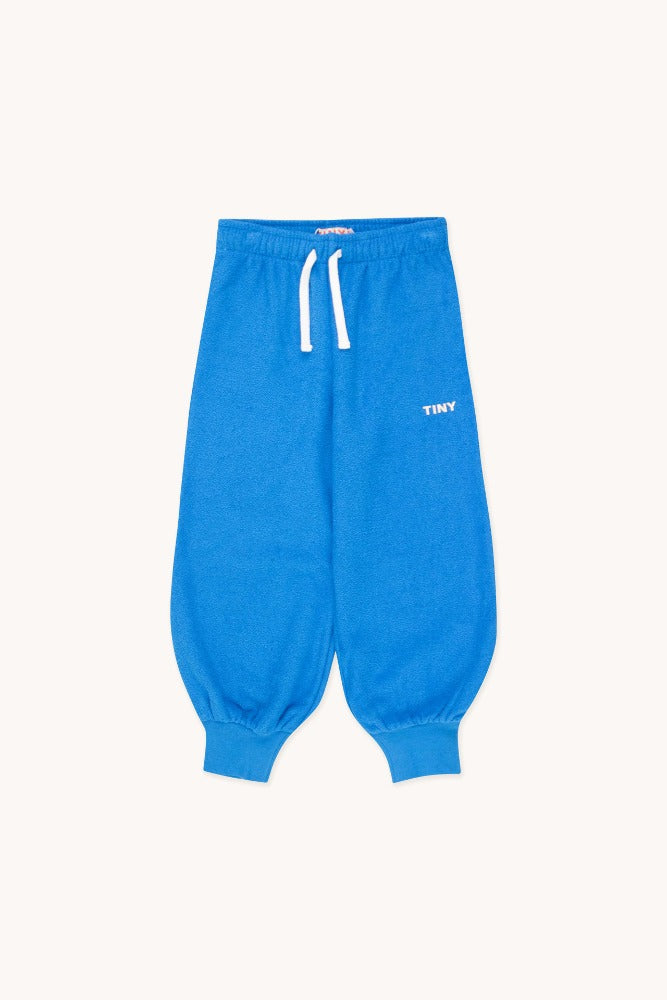 이 라이트 블루 스웻팬츠는 100% 테리 면으로 제작되었습니다. 신축성 있는 허리밴드와 조절 가능한 드로우스트링, 골지 트림이 편안함과 안정적인 핏을 제공합니다. Made in China.