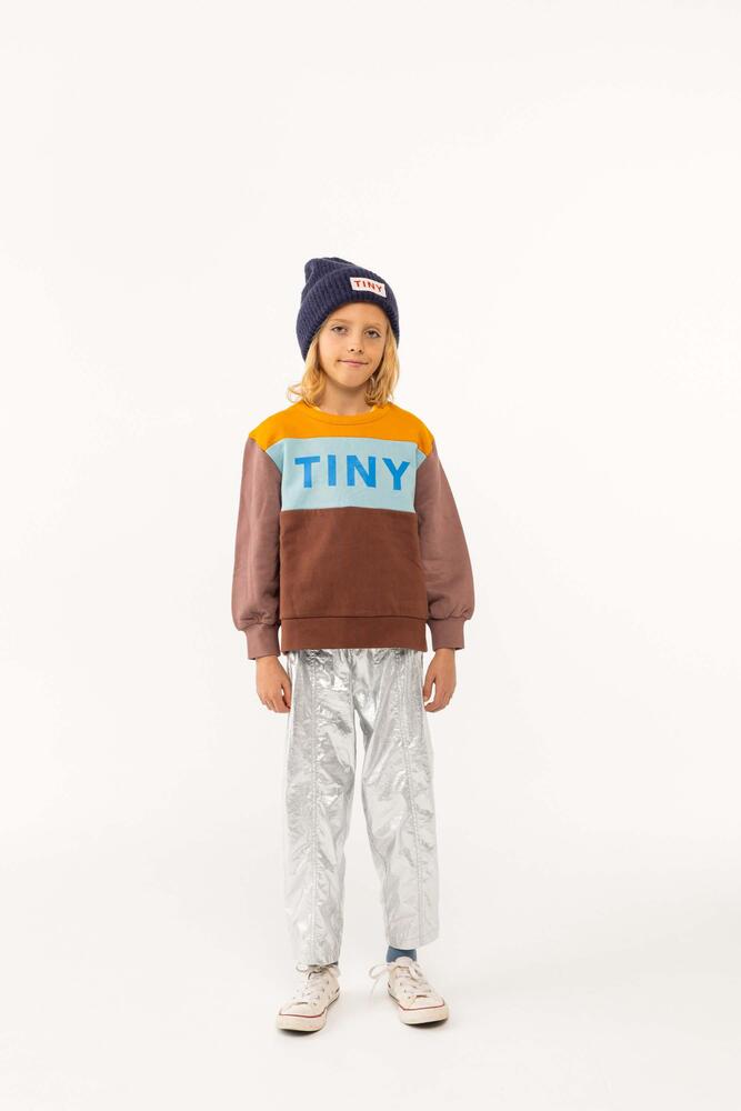 이 머스타드와 초콜릿 색상의 컬러 블록 스웻셔츠는 대담한 TINY 로고가 특징이며, 100% 면으로 제작되었습니다. 라운드 넥라인과 신축성 있는 대비 골지 트림이 편안한 핏을 제공하여 일상적인 착용에 적합합니다. Made in China.