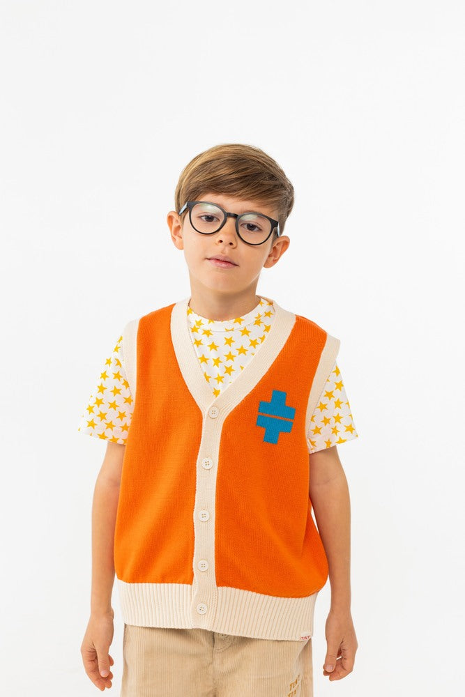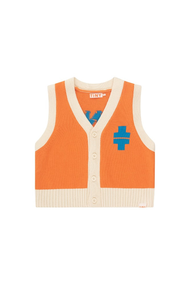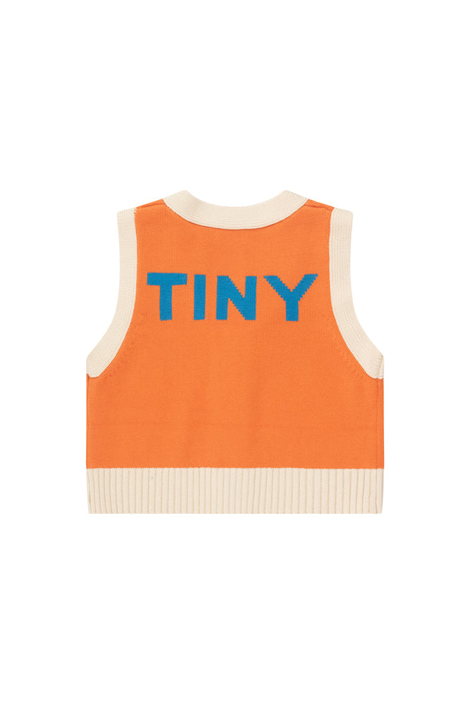 이 써머 레드 베스트는 80% 면과 20% 울 혼합 소재로 제작되었습니다. 앞면과 뒷면에 대담한 TINY 로고가 특징이며, V넥 디자인과 버튼, 대비되는 트림이 있어 겨울철 레이어링에 적합합니다. Made in China.