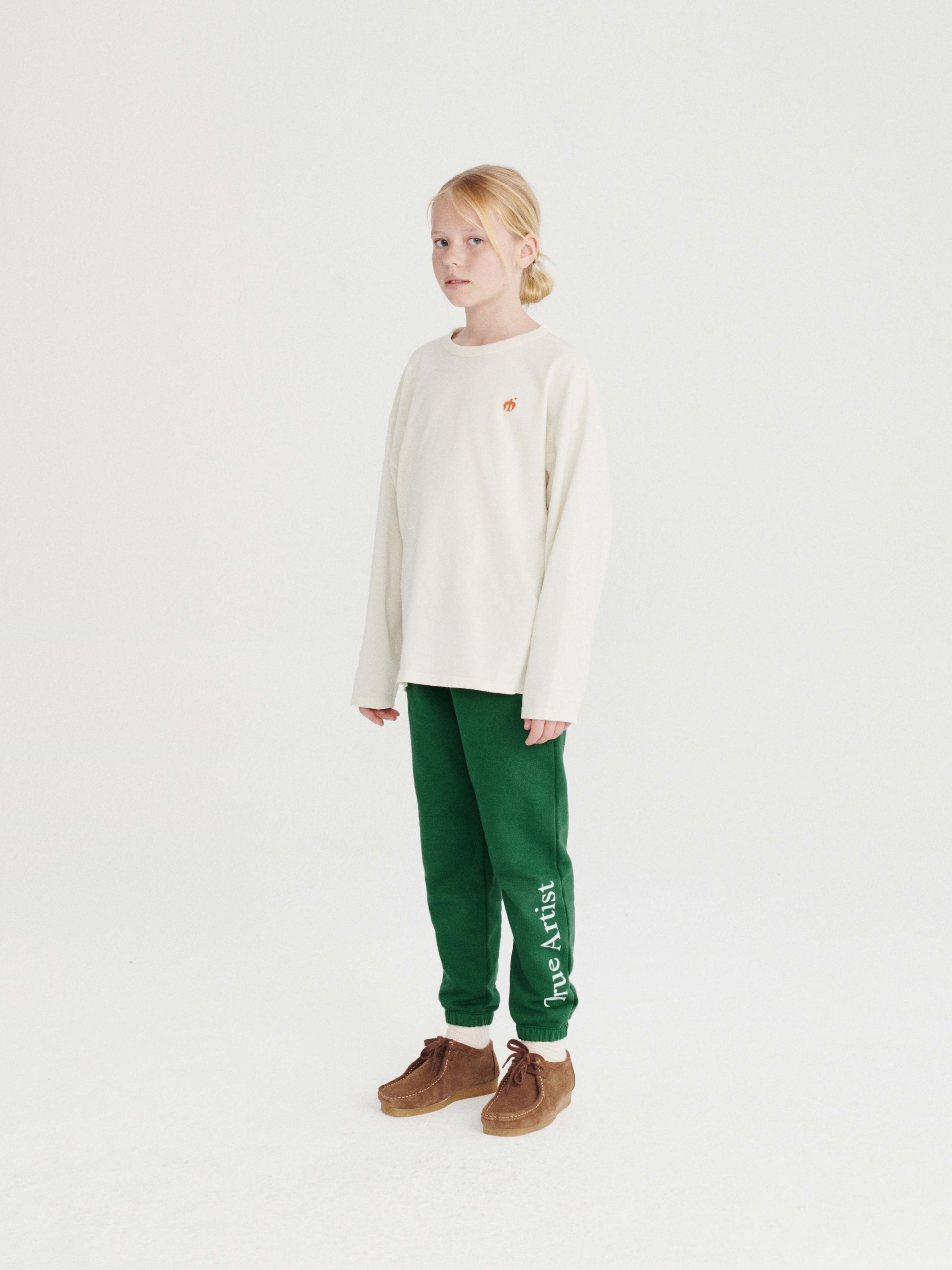스웻팬츠 nº05 버던트 그린은 98% 유기농 면과 2% 엘라스테인 플리스로 제작되었으며, 다리에 로고가 프린트되어 있습니다. 허리는 조절 가능한 밴드로 디자인되었고, 여유있는 밑위 길이와 슬래시 포켓이 있습니다. 편안한 핏입니다. Made in Spain.모델의 키는 138cm이며, 8-9Y 사이즈를 착용하였습니다.