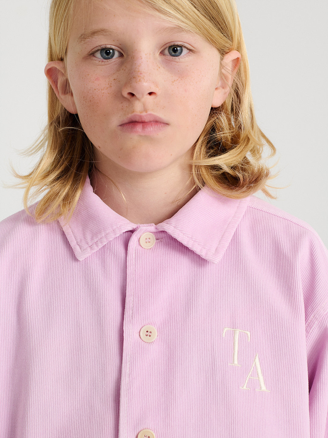 오버셔츠 nº01 PInk Blush는 100% 코튼 소재로 제작되었으며, 전면에는 아이코닉한 TA 로고 자수가 놓여 있습니다. 부드러운 코듀로이 원단으로 제작된 이 오버셔츠는 스프레드 칼라, 버튼 여밈, 그리고 앞면 패치 포켓 디자인으로 구성되어 있습니다. 루즈 핏으로 여유 있는 실루엣을 제공합니다. Made in Spain. 모델 신장은 142cm이며, 사이즈 8/9Y를 착용하고 있습니다.(가슴 68cm / 허리 67cm / 엉덩이 76cm)