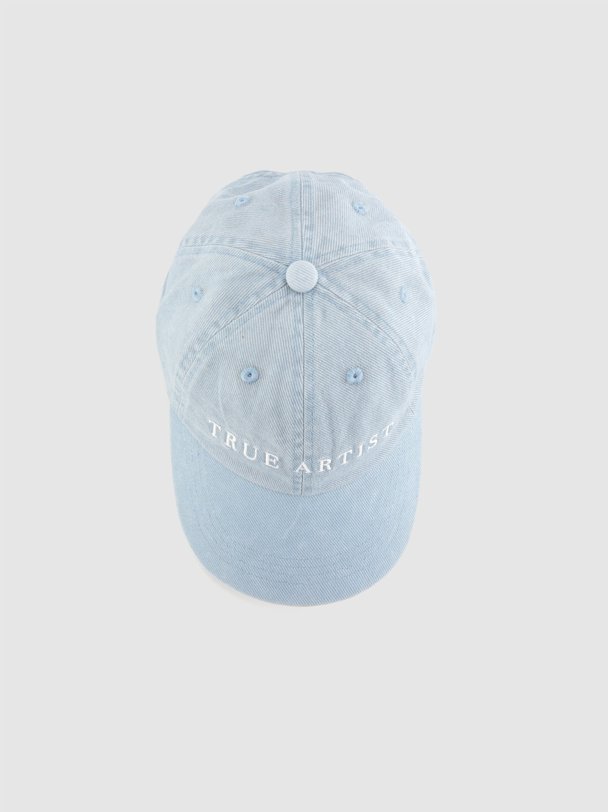 스카이라이드 블루 컬러의 Cap nº01은 100% 재활용 코튼 소재로 제작된 액세서리로, 앞면에 TRUE ARTIST 로고 자수가 적용되어 있습니다.Made in China.