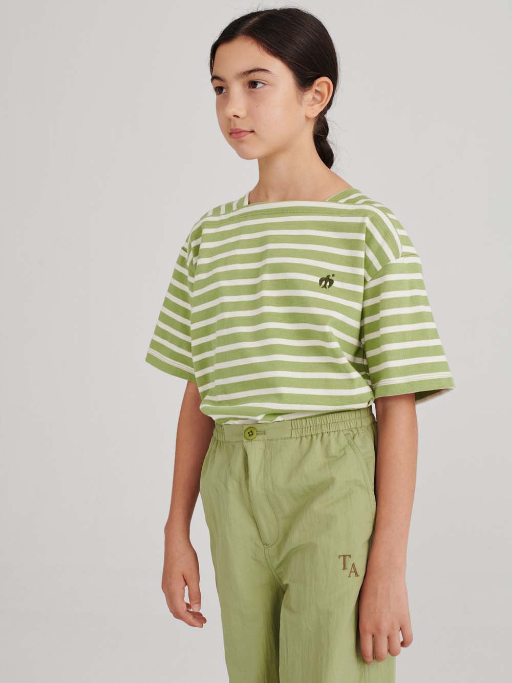 트라우저 n09 시더 그린은 100% 폴리아미드 소재로 제작되었으며, TA 로고가 자수되어 있습니다. 이 바지는 허리 밴드를 조절할 수 있도록 디자인되었으며, 패치 포켓과 바지통 너비를 조절할 수 있는 단추가 있습니다. 릴렉스한 핏을 가지고 있습니다. Made in China.모델의 키는 146cm이며, 10-11Y 사이즈를 착용하고 있습니다.