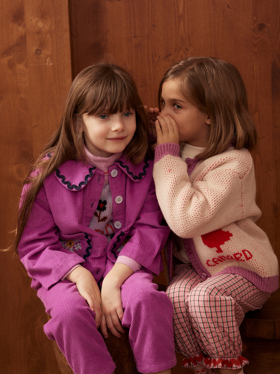 소재: 울 15%, 나일론 10%, 아크릴 75%패턴이 더해진 버튼 여밈 니트 가디건으로, 살짝 오버사이즈 핏에 낮은 암홀 디자인입니다.넓고 둥근 칼라가 있으며, 칼라·소매 끝·밑단·버튼 플래킷에는 대비색 디테일이 들어가 있습니다. Made in China.제품 내 케어라벨 참고 : 기계 세탁 시 찬물 사용, 건조기 사용 금지