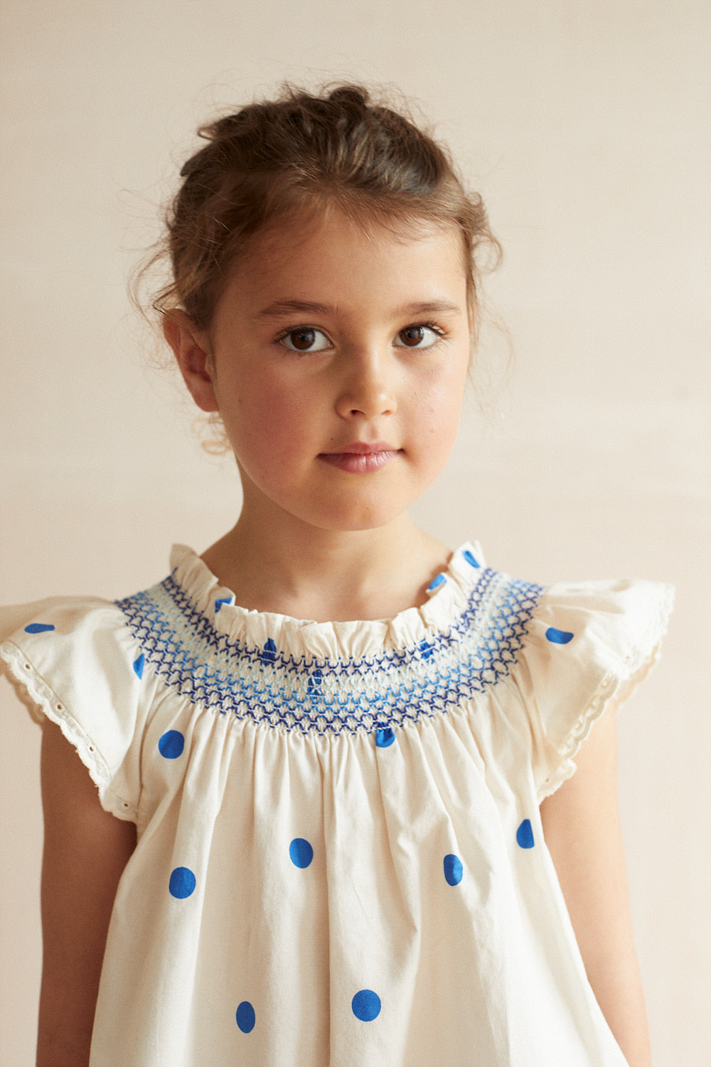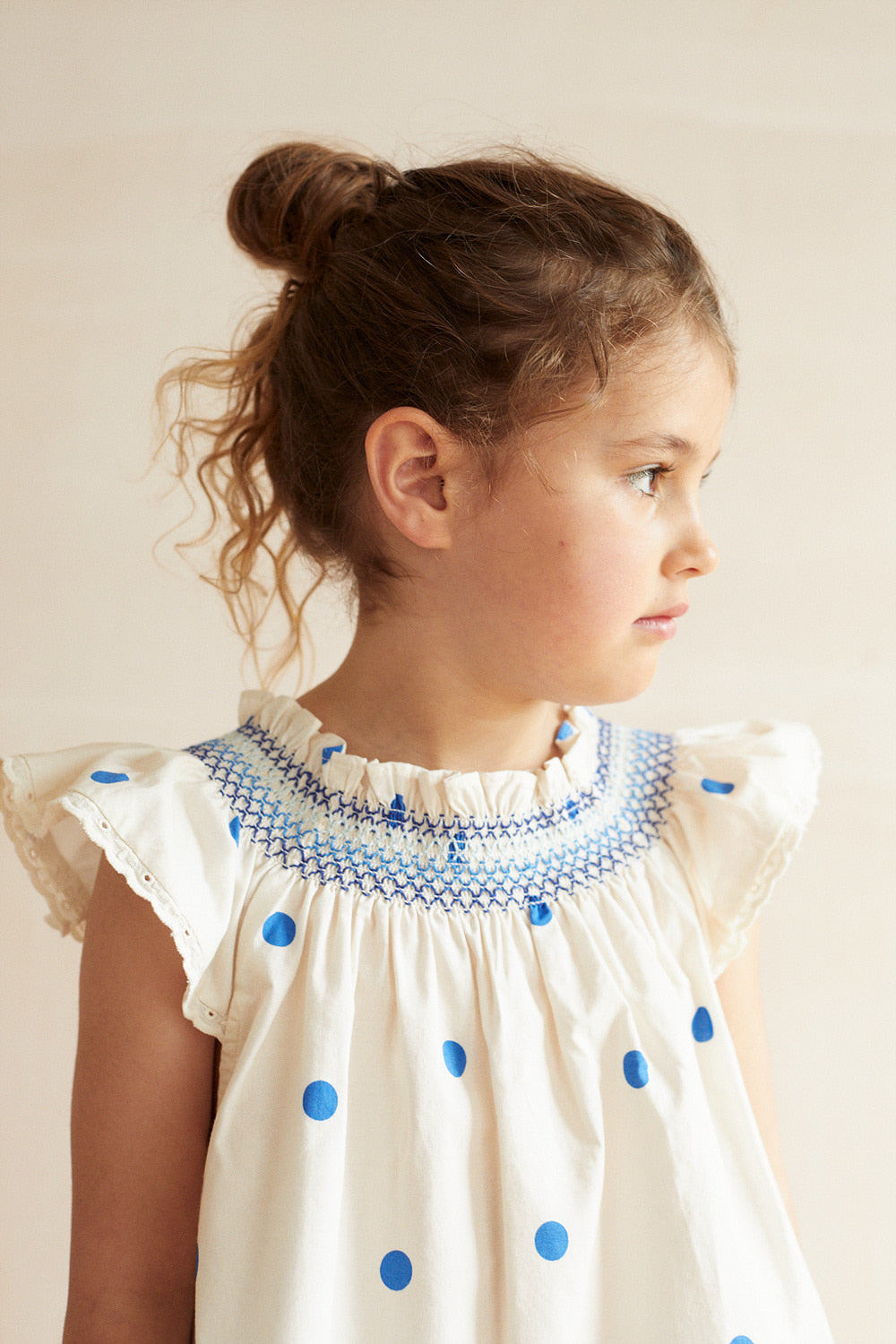소재: 100% 코튼 (Oeko-Tex 인증)전체 프린트가 더해진 포플린 블라우스로, 네크라인 주위에 자수로 장식된 둥근 스모크 디테일이 특징입니다. 소매 끝부분에는 브랜드 영문 자수가 더해진 러플 디테일이 있으며, 네크라인에는 작은 패브릭 러플이 장식되어 있습니다. Made in India.제품 내 케어라벨 참고 : 기계 세탁 시 찬물 사용, 건조기 사용 금지