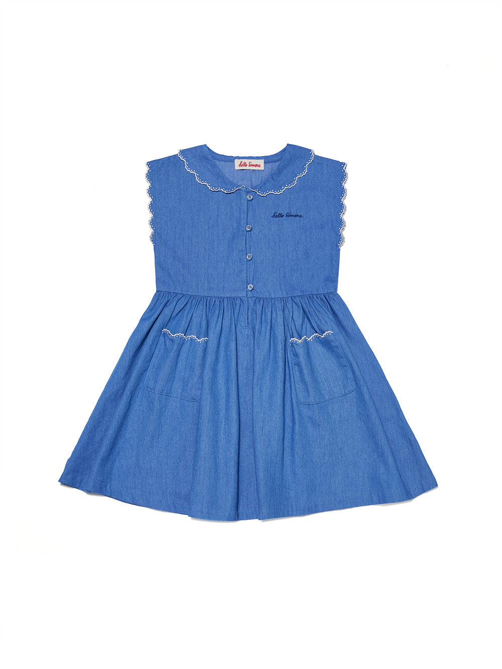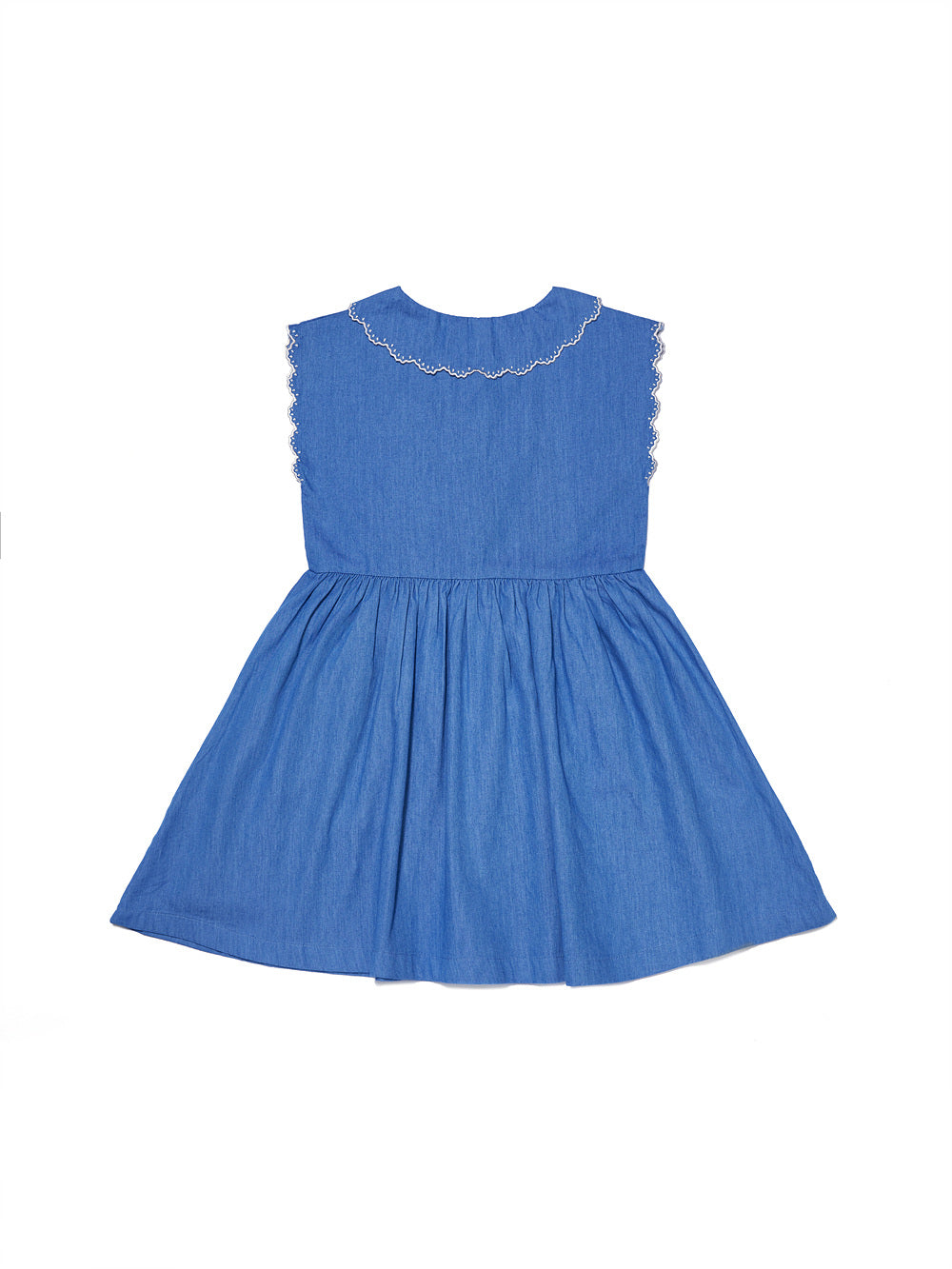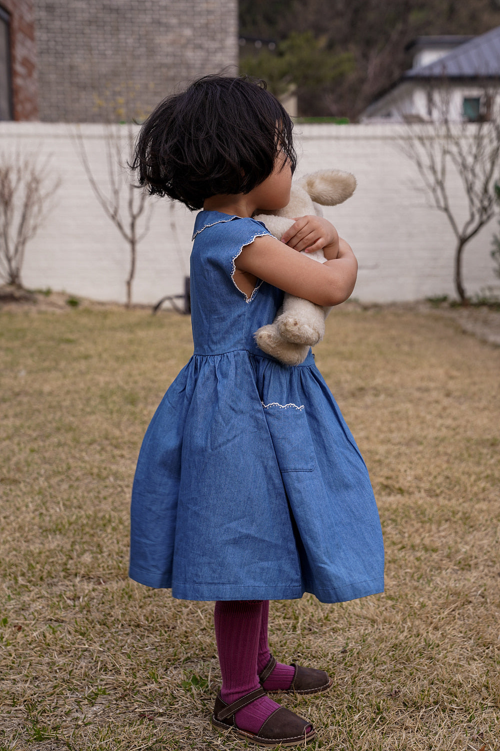 소재: 데님 코튼 100%핫썸머에 입을 수 있는 얇은 데님 소재로 앞주머니에 귀여운 자수 디테일의 여아 원피스 입니다. Made in China.제품 내 케어라벨 참고 : 기계 세탁 시 찬물 사용, 건조기 사용 금지