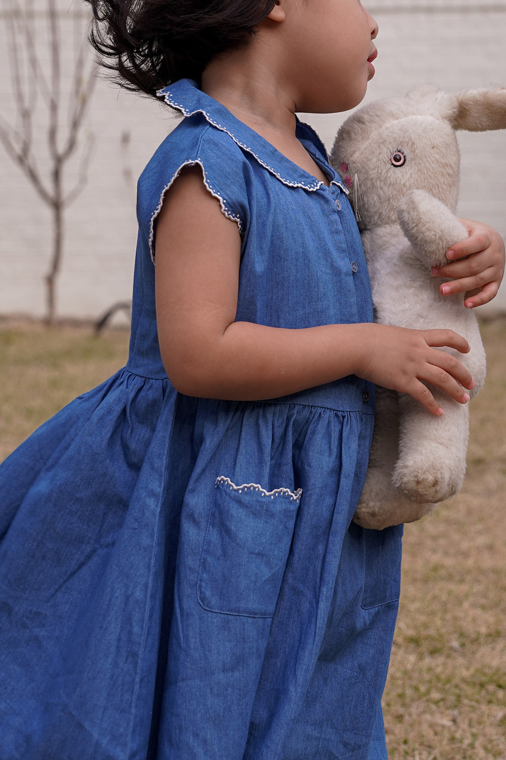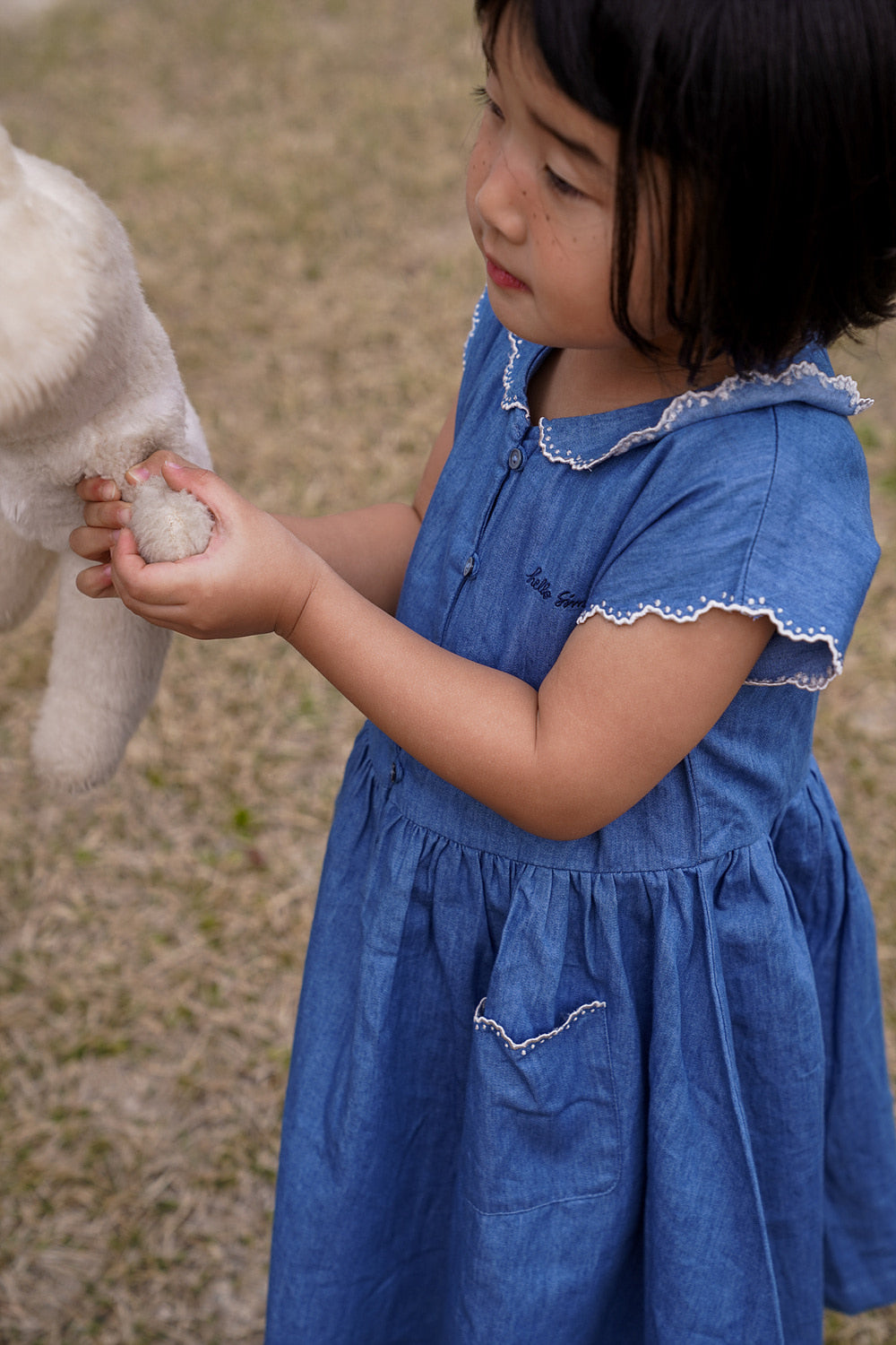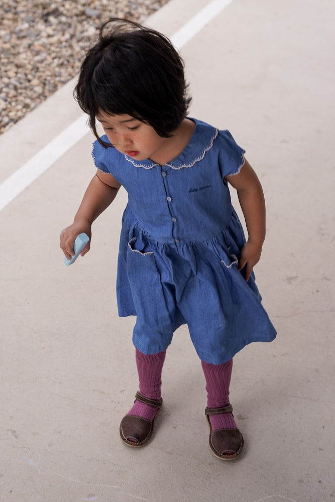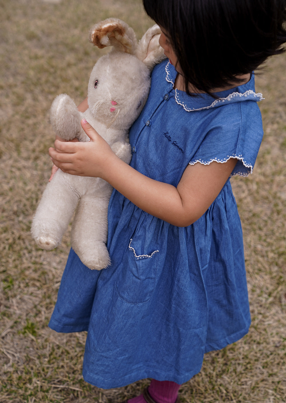 소재: 데님 코튼 100%핫썸머에 입을 수 있는 얇은 데님 소재로 앞주머니에 귀여운 자수 디테일의 여아 원피스 입니다. Made in China.제품 내 케어라벨 참고 : 기계 세탁 시 찬물 사용, 건조기 사용 금지