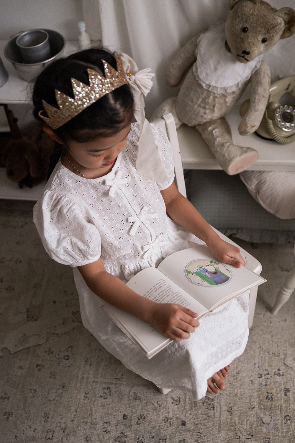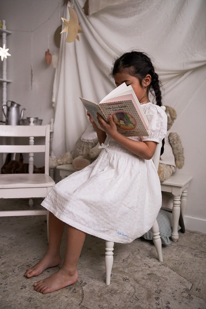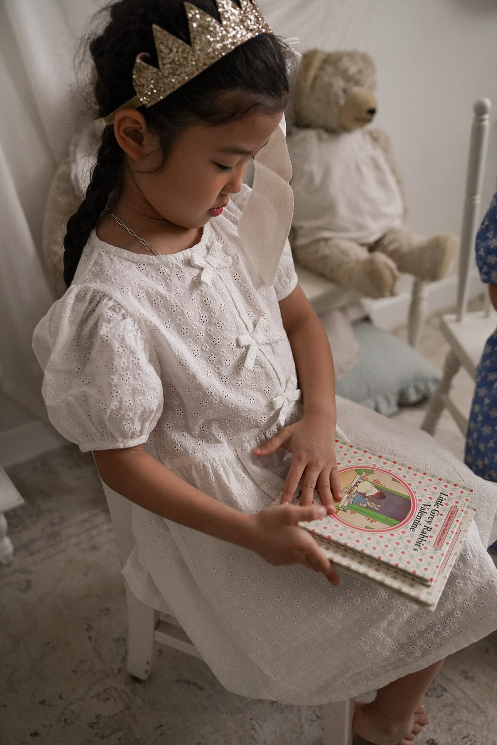 소재: 코튼 100%화이트 아일엣 소재의 리본 디테일이 포인트인 퍼프형 소매의 드레스입니다. Made in China.제품 내 케어라벨 참고 : 기계 세탁 시 찬물 사용, 건조기 사용 금지