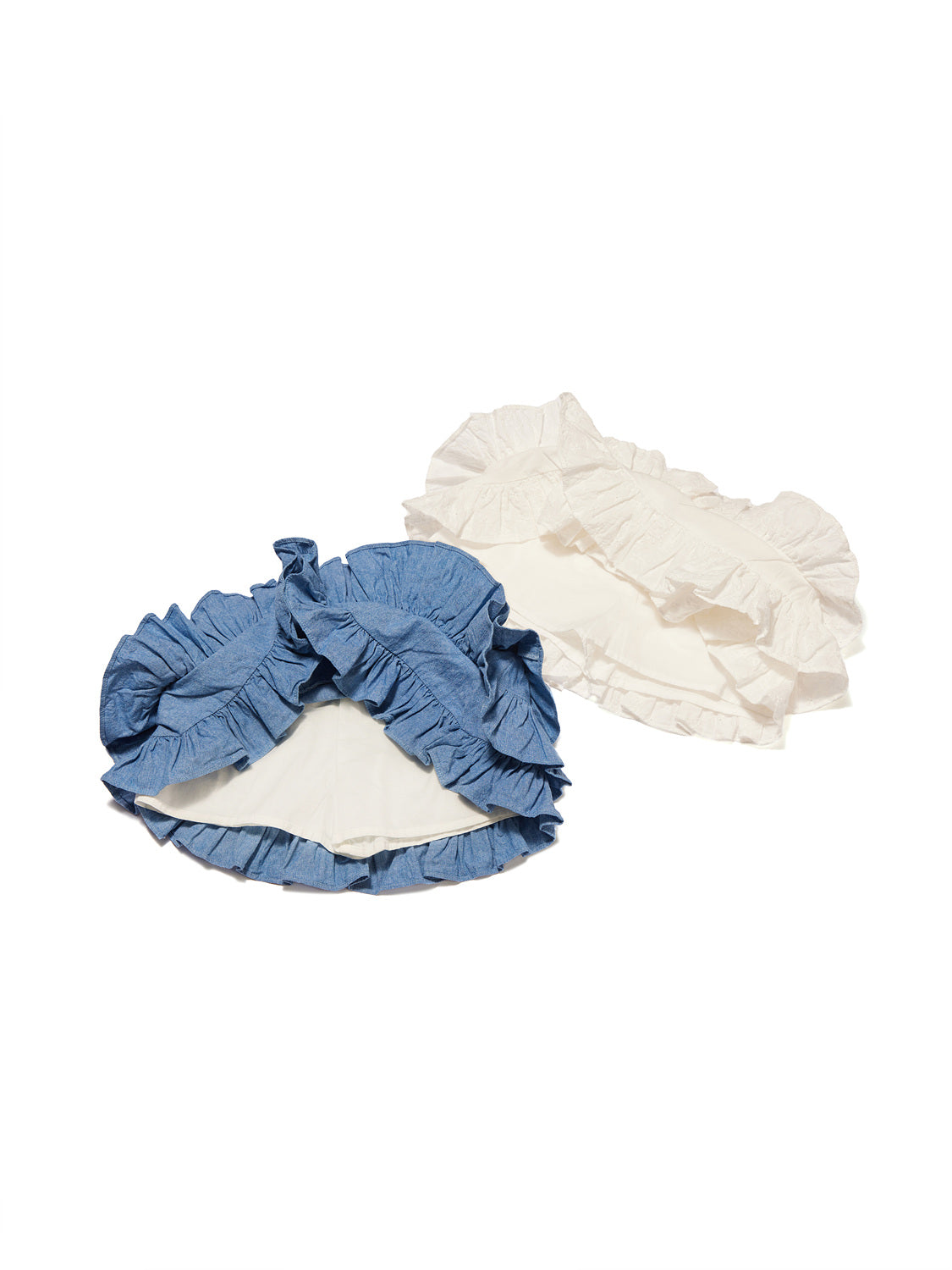 소재 : Chambray Cotton 100%샴브레이 소재의 캉캉 숏스커트 입니다. 안쪽에 속바지 처리가 되어있어서 실용적인 스커트 입니다. Made in China.