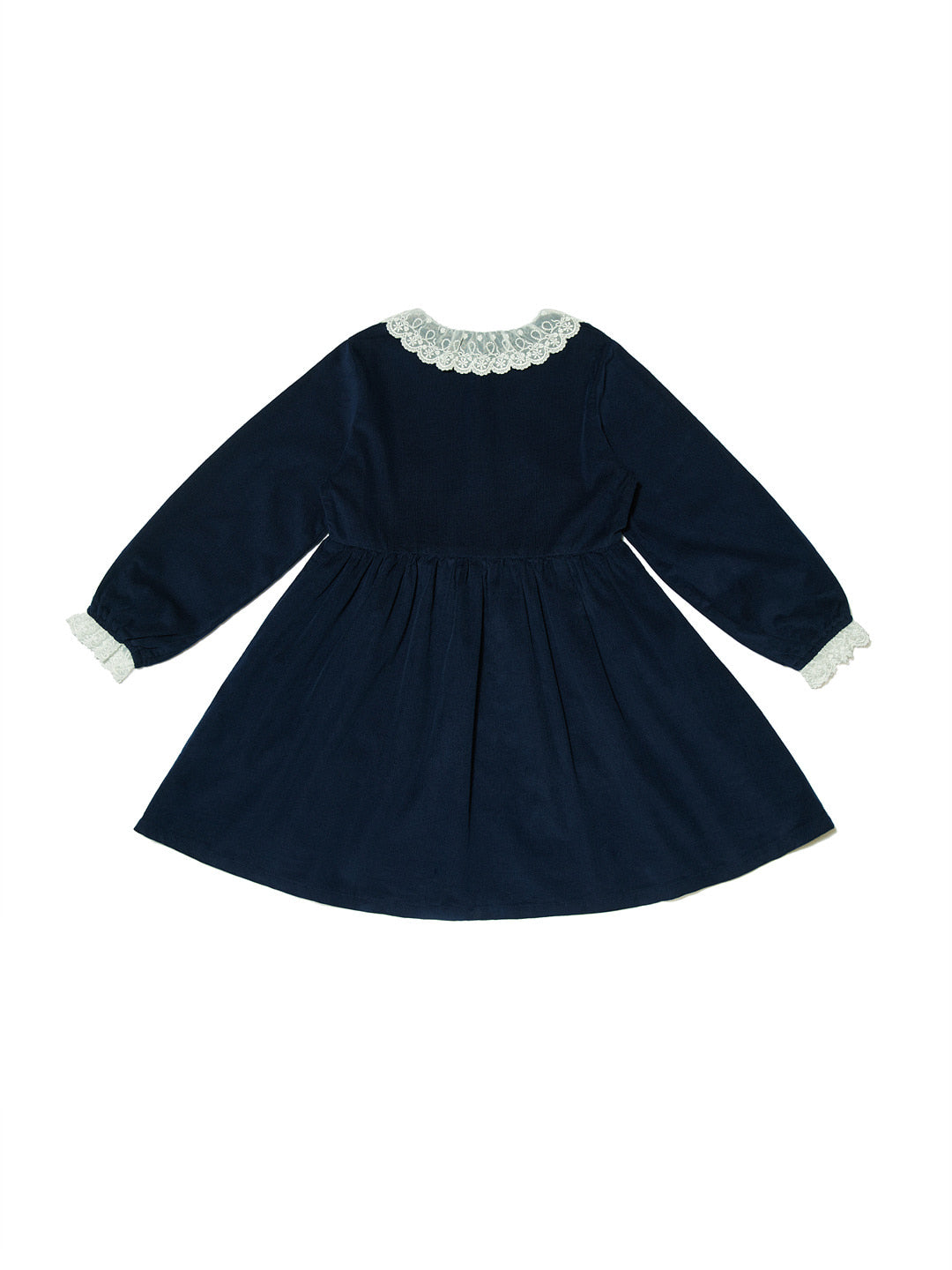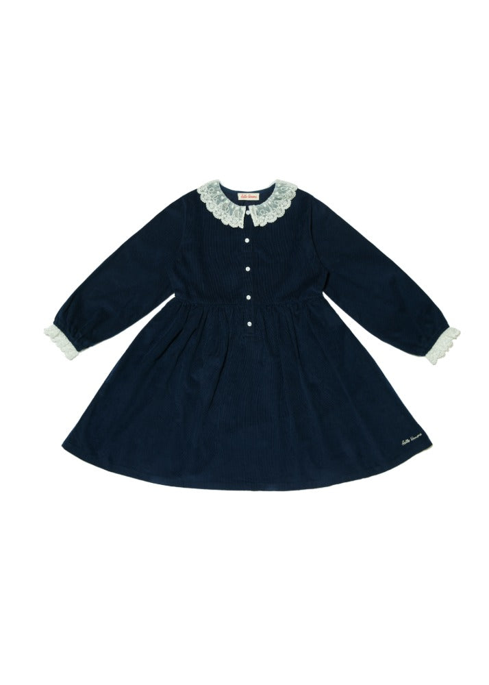 소재: 코듀로이, 코튼 100%겨울에 따뜻하게 입을 수 있는 코듀로이 소재의 원피스 입니다. 여아스러운 레이스 카라가 달린 원피스로 심플하고 단정한 스타일의 셔츠형 원피스 입니다. Made in China.