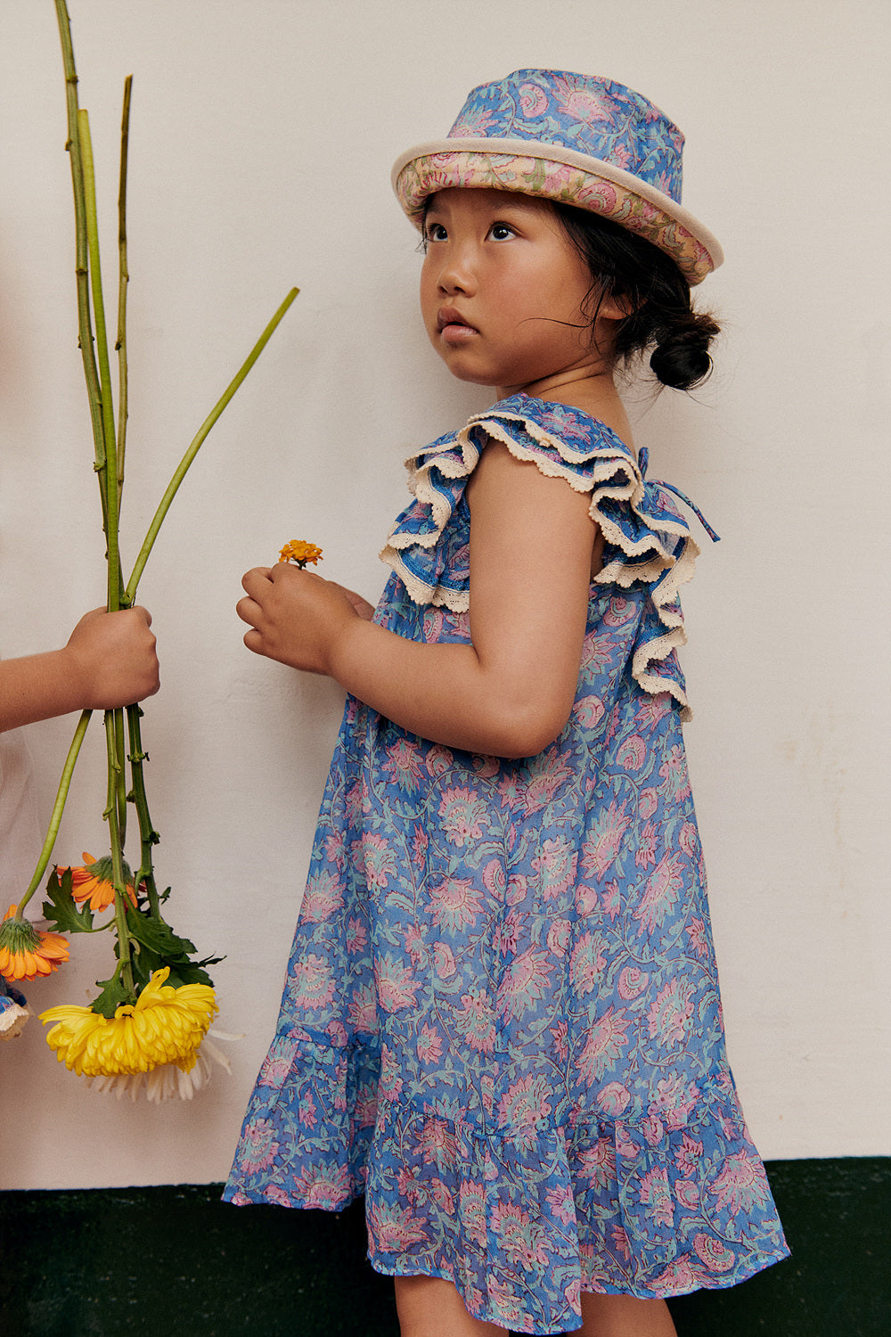 우리가 좋아하는 디테일:· 플로럴 코튼 보일 드레스, 안감 처리 완료· 레이스 엣지가 있는 짧은 러플 소매· 레이스 엣지가 있는 러플 네크라인· 러플과 레이스 엣지가 돋보이는 깊게 파인 뒷면· 뒷면 작은 리본 디테일로 잠금· 밑단 큰 러플 디테일* 참고: 3세 이하 사이즈는 뒷면이 노출되지 않고, 상단에서 하단까지 버튼으로 잠겨 있습니다.물 온도 30°C 로 약하게 세탁표백 금지기계건조 금지낮은 온도로 다림질드라이클리닝화기에 가까지 하지 말 것