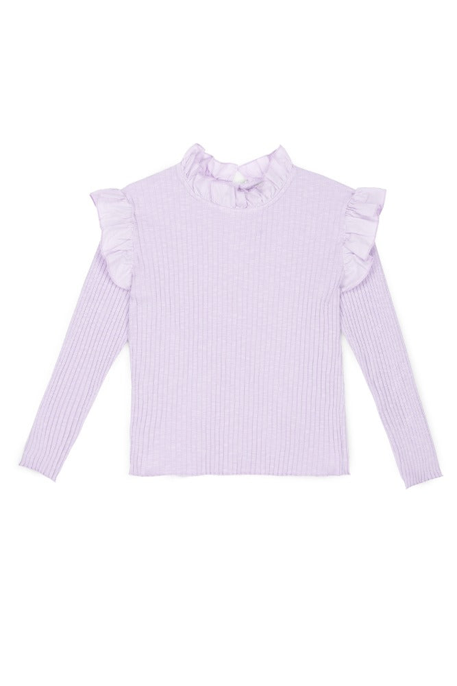 섬세한 프릴과 대담한 디자인으로 클래식 저지 탑에 여성스러운 변화를 주었습니다. 유기농 코튼 리브드 플라메 저지로 제작되어, 단독으로 입거나 퀼팅 재킷 아래에 레이어링해서 입기 좋은 아이템입니다.