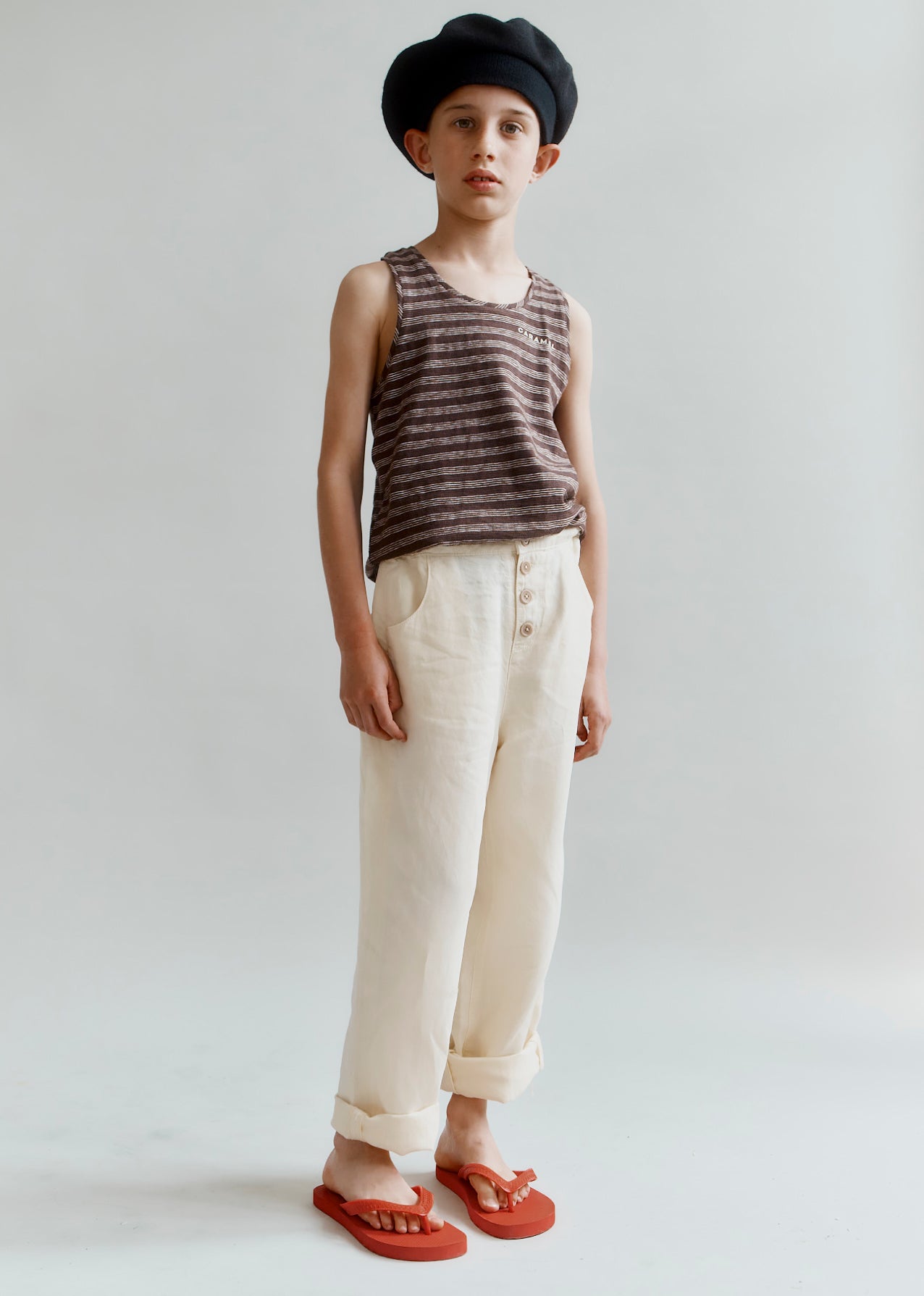 The Cassia Child Top reimagines classic stripes, carefully made from Japanese cotton jersey. A variety of brown, navy, and ecru tones dance together, offering freedom for those always on the go. With its relaxed fit, this top moves with your child, a versatile piece for everyday.